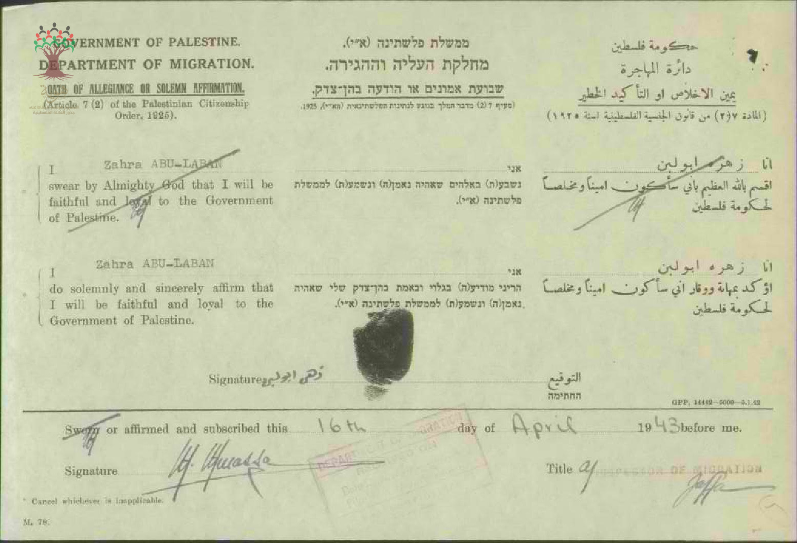 زهرة سعيدي أبو لبن توقع على (يمين الإخلاص) للحصول على الجنسية الفلسطينية