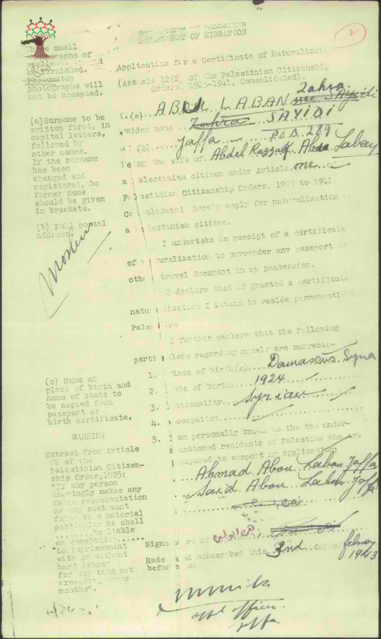 طلب الجنسية الفلسطينية-زهرة سعيدي أبو لبن-يافا