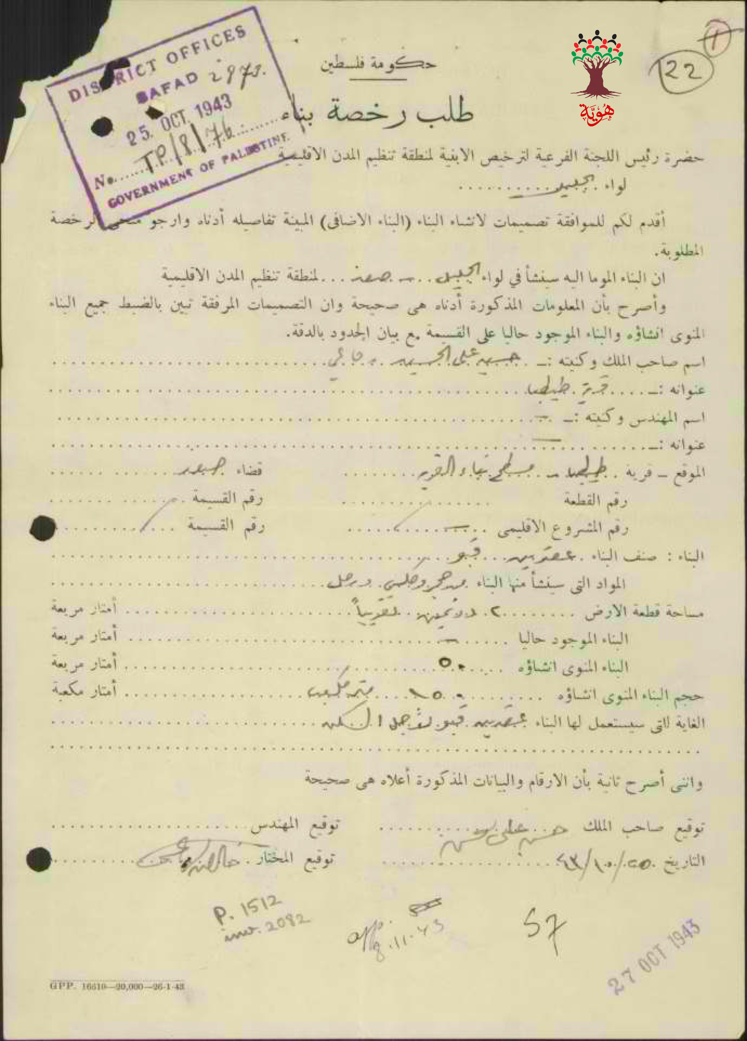 طلب رخصة بناء عقدين قبو - حسين رفاعي - طيطبا