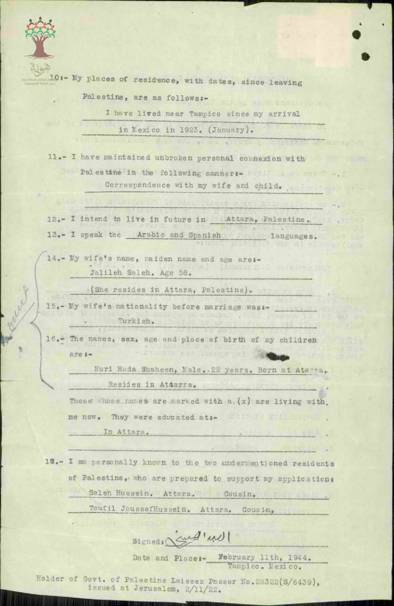 طلب الجنسية الفلسطينية-عبد حسين شاهين-عطارة-رام الله