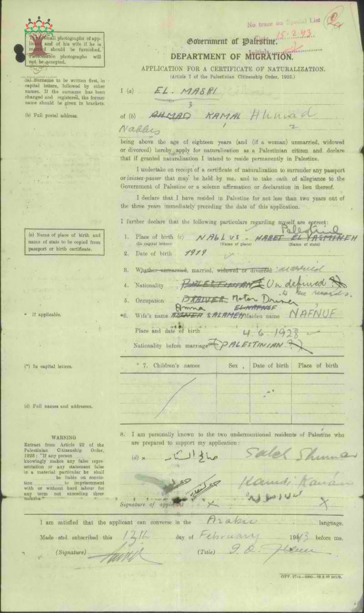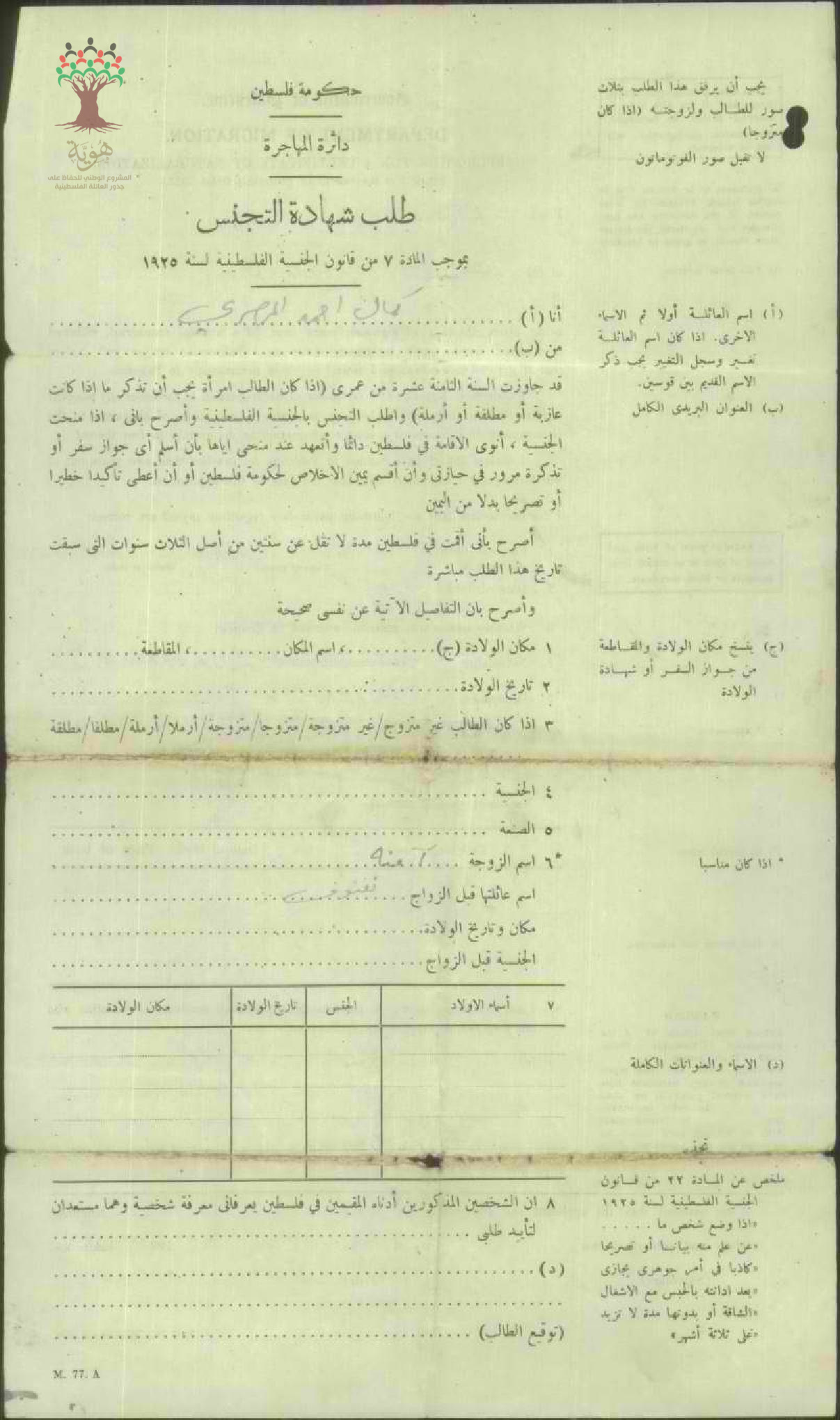 طلب الجنسية الفلسطينية-كمال أحمد المصري-نابلس