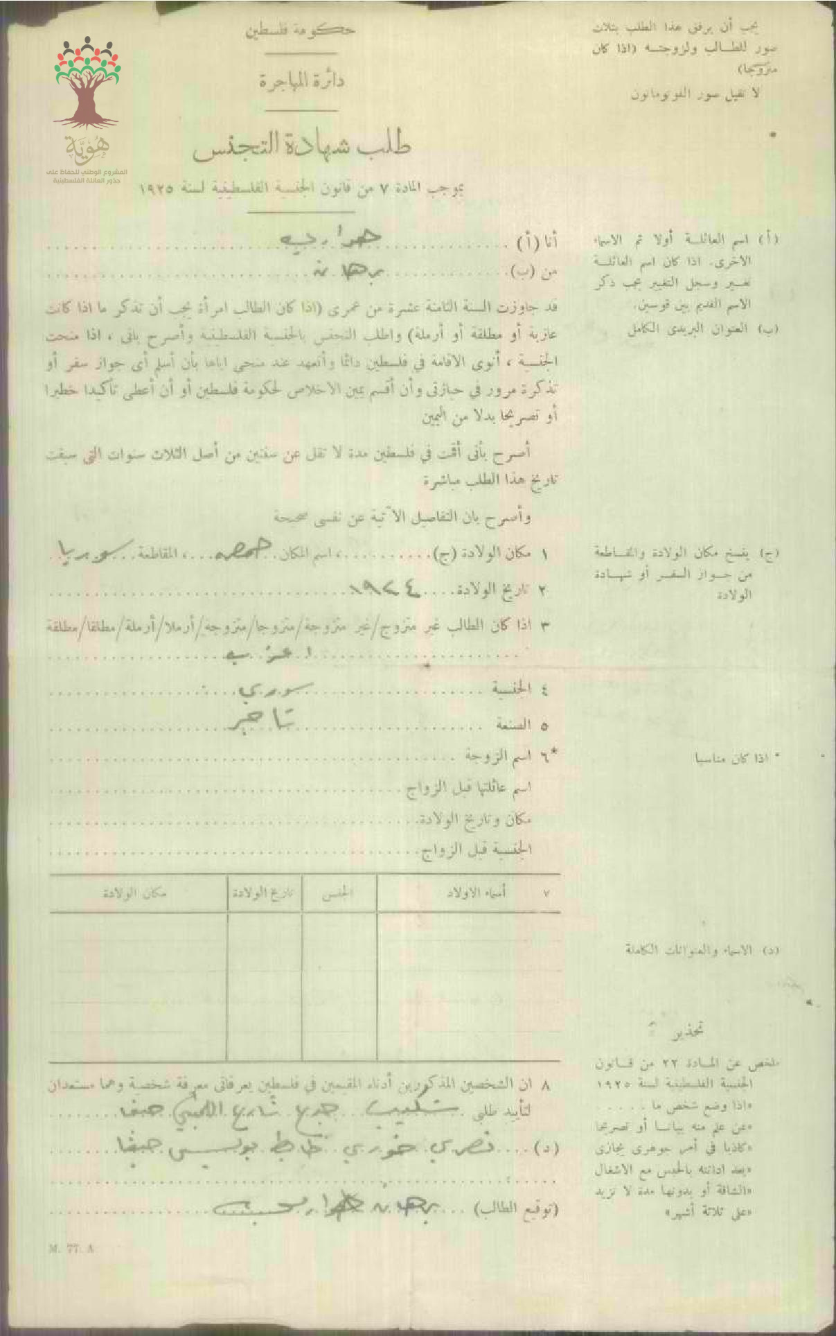 طلب الجنسية الفلسطينية-برهان هواري-حيفا/سوريا
