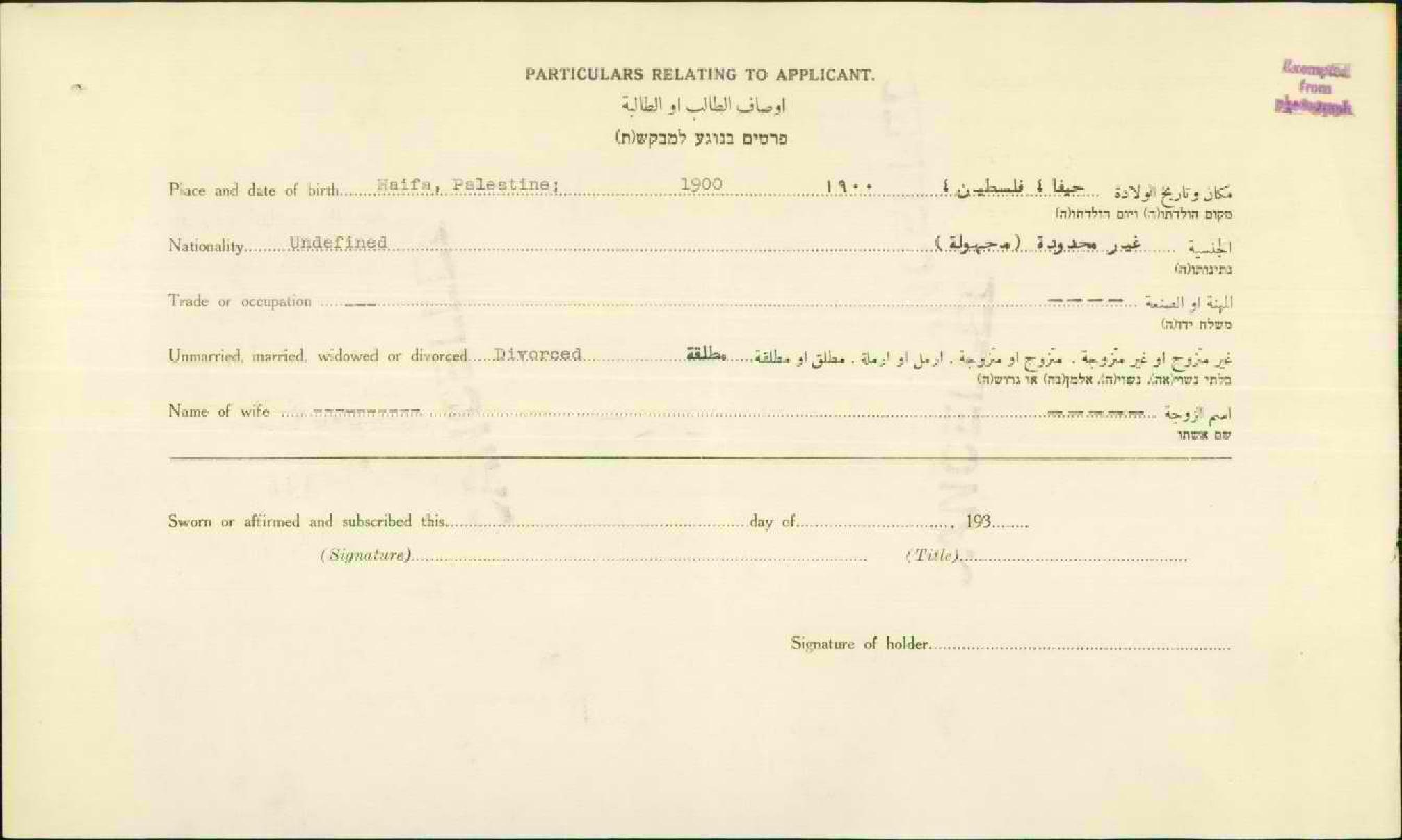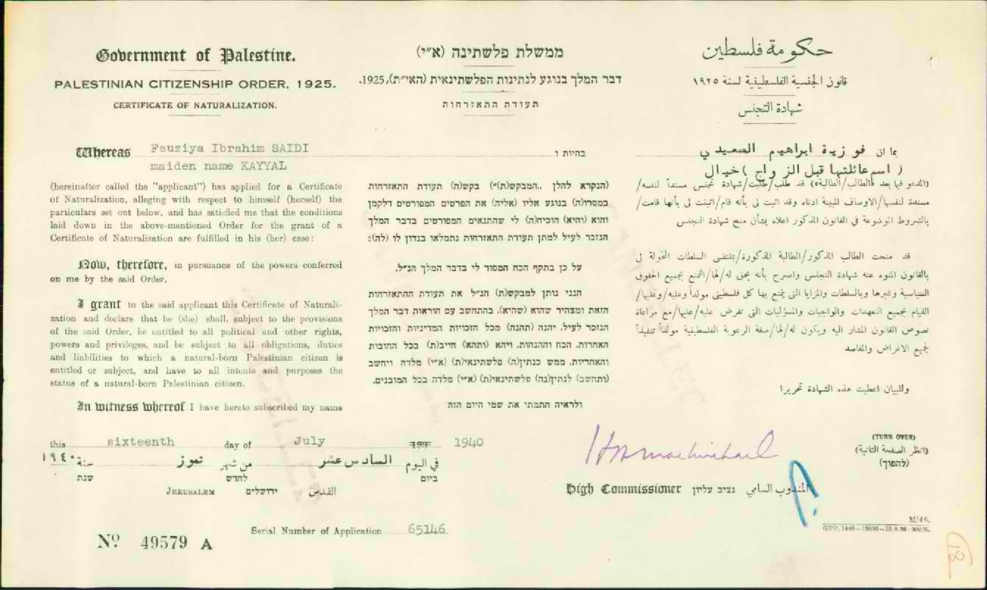 شهادة الجنسية الفلسطنية-فوزية ابراهيم الصعيدي(خيال)