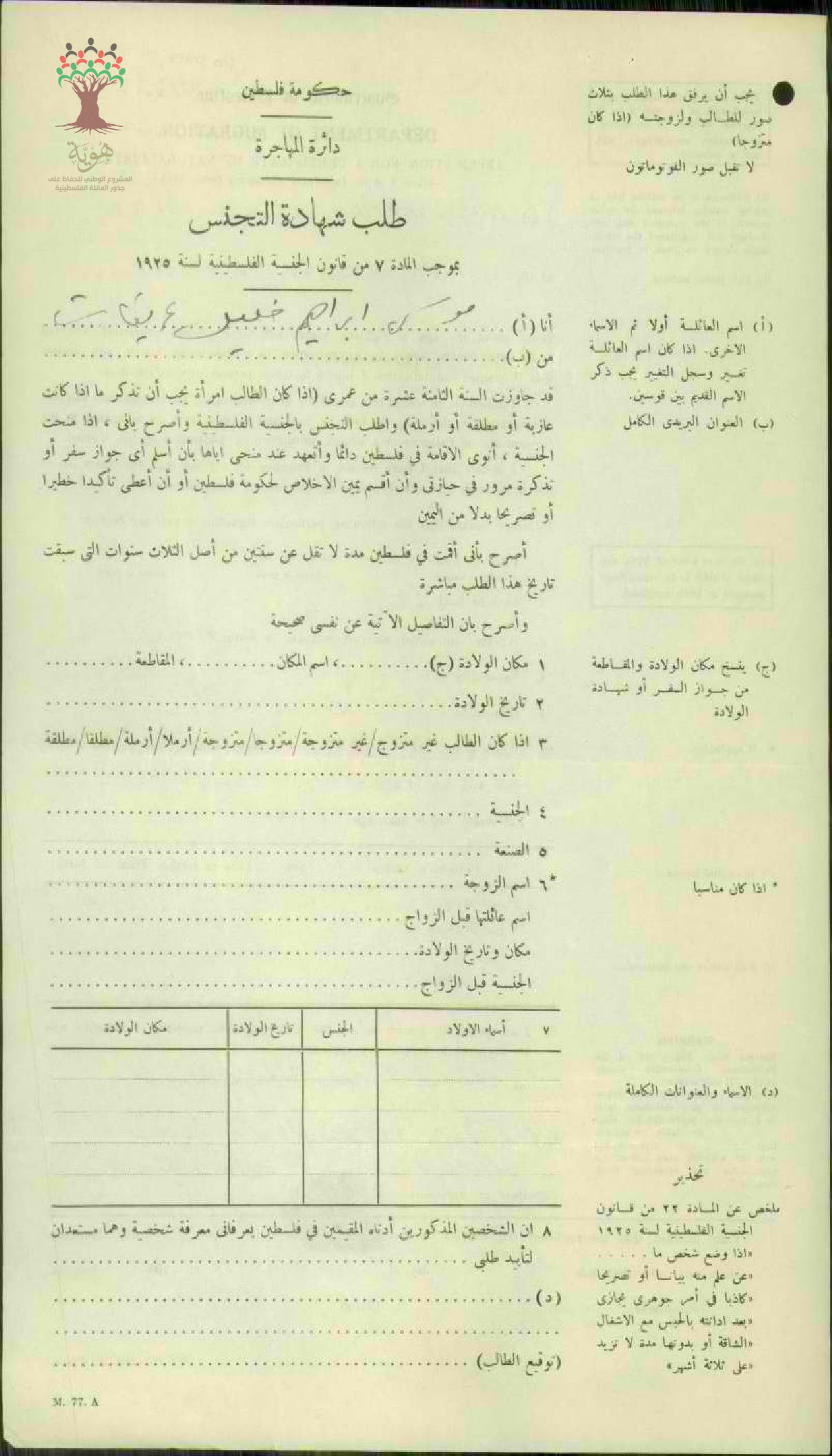 طلب الجنسية الفلسطينية-موسى إبراهيم خليل عريقات-أبو ديس/الولايات المتحدة