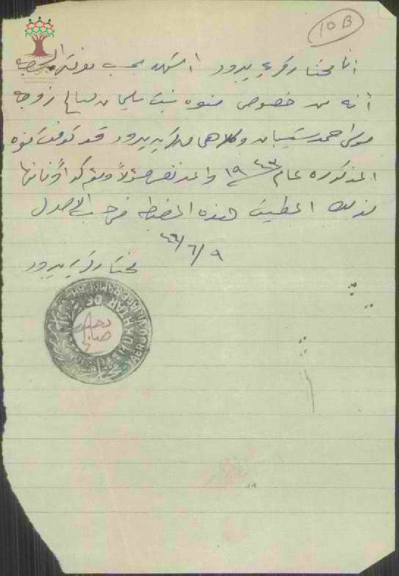 شهادة وفاة من المختار للسيدة منوة سليمان صالح زوجة موسى شيبان