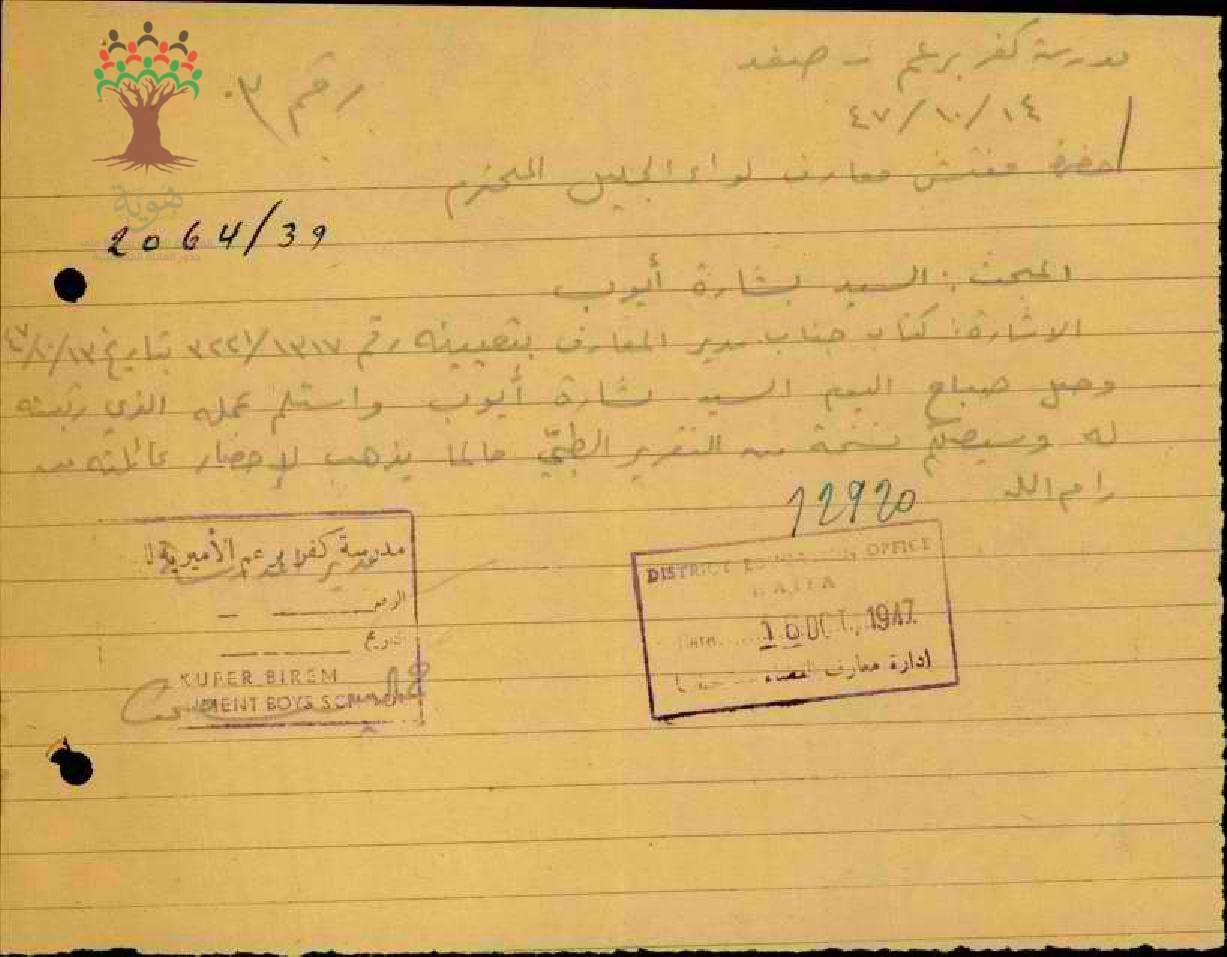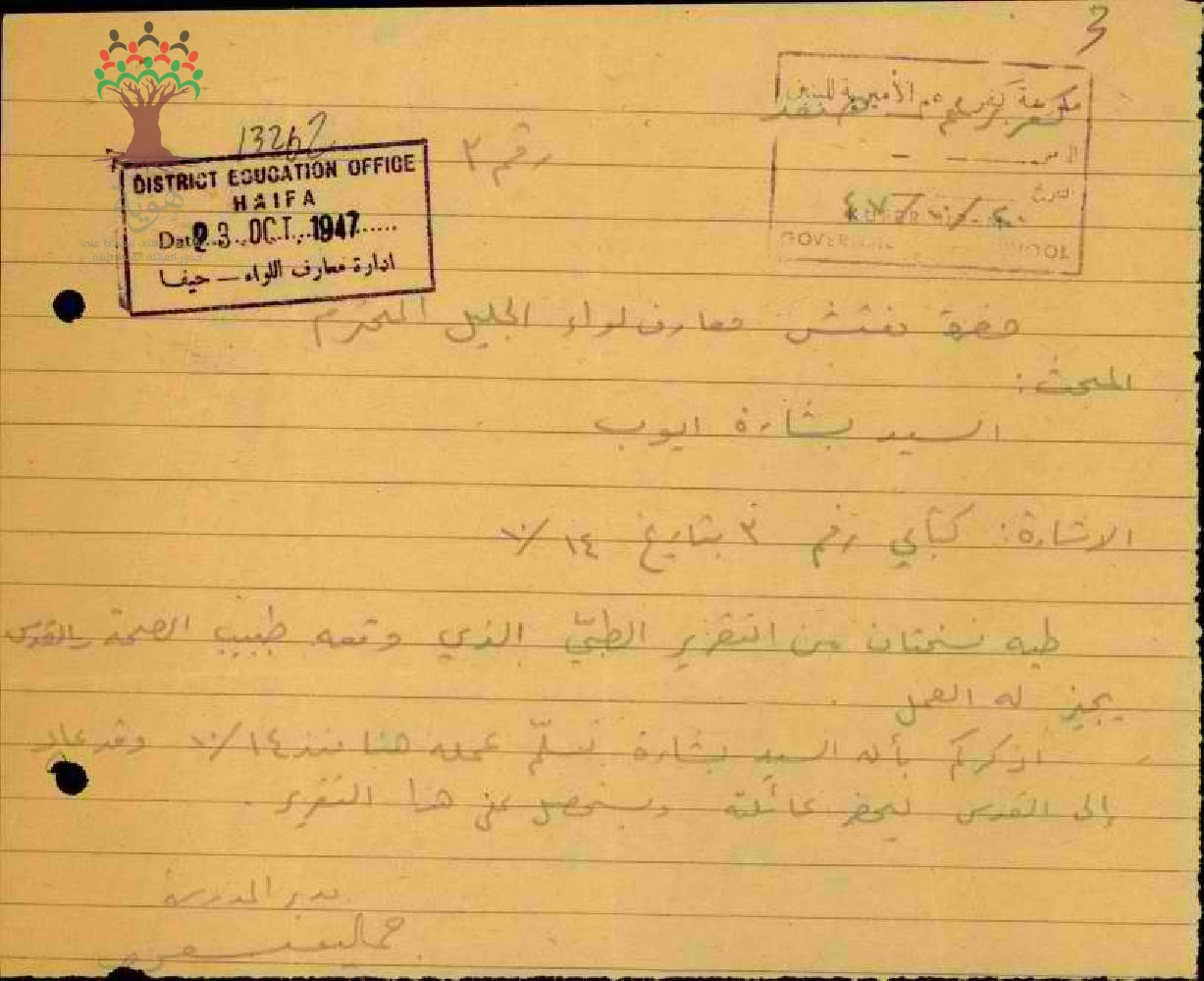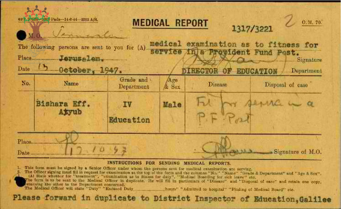تقرير طبي لتوظيف المعلم بشارة ايوب في مدرسة كفر برعم
