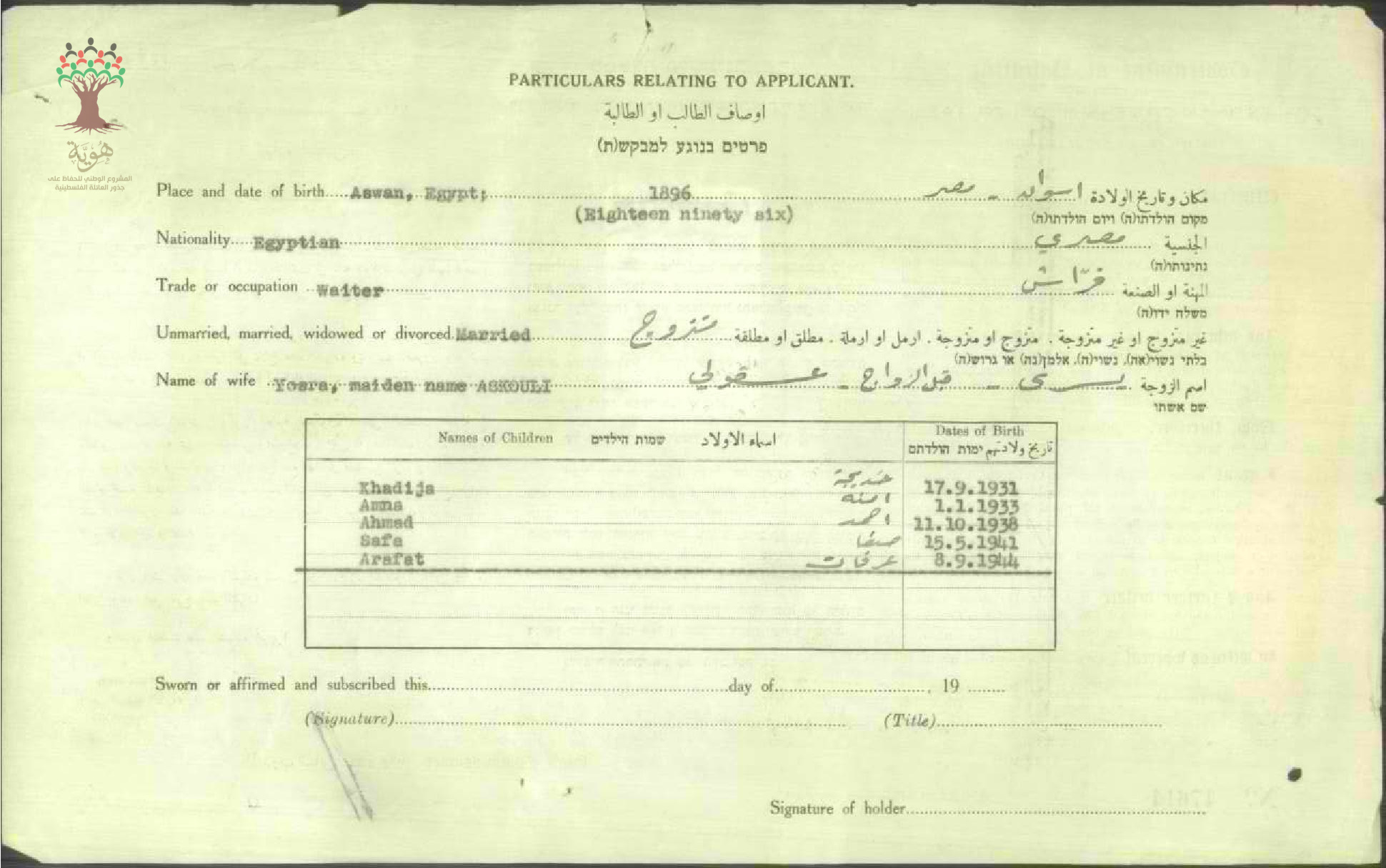 شهادة الجنسية الفلسطينية ل بشير ذهب حسن