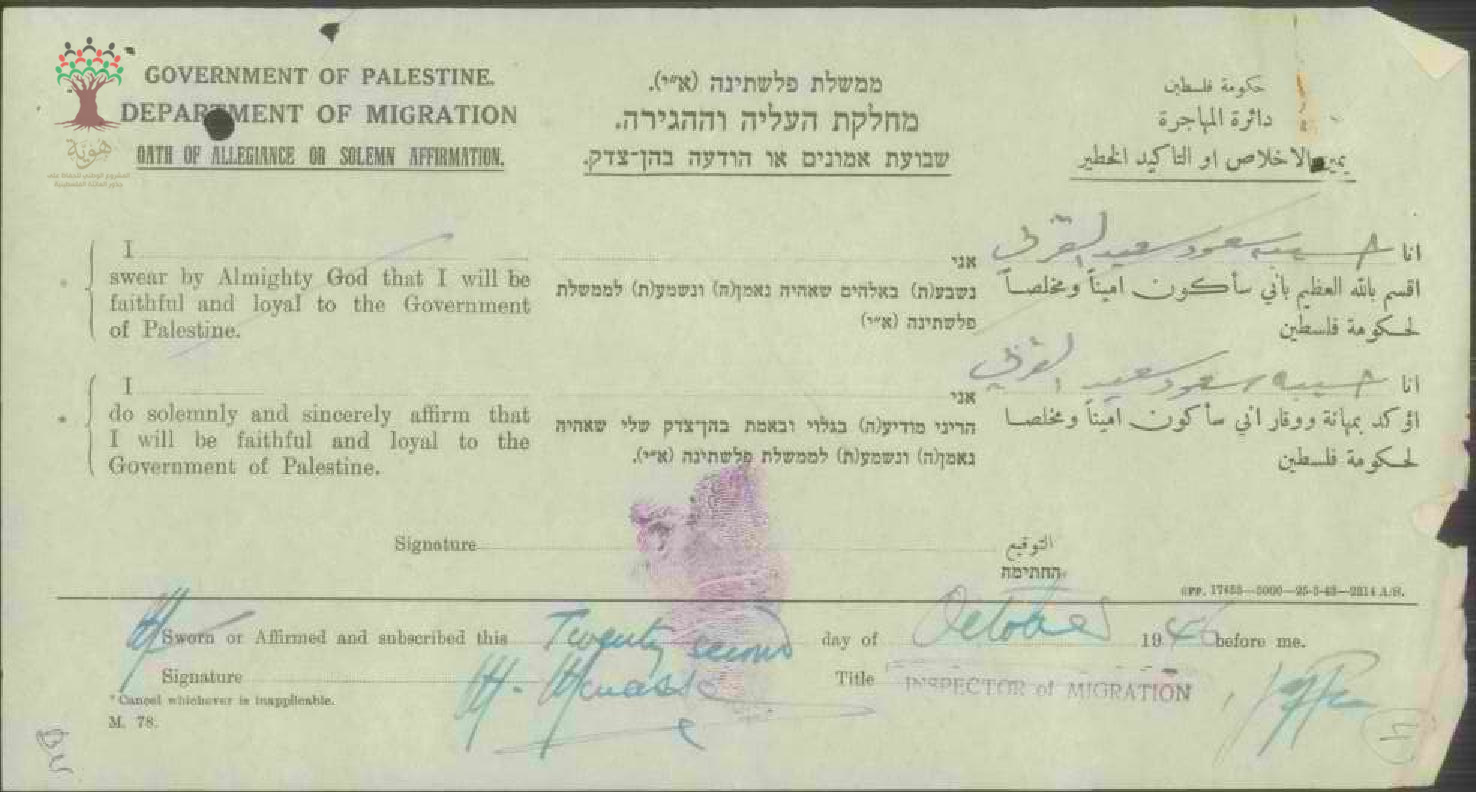 حسيبة القربي توقع على (يمين الإخلاص) للحصول على الجنسية الفلسطينية