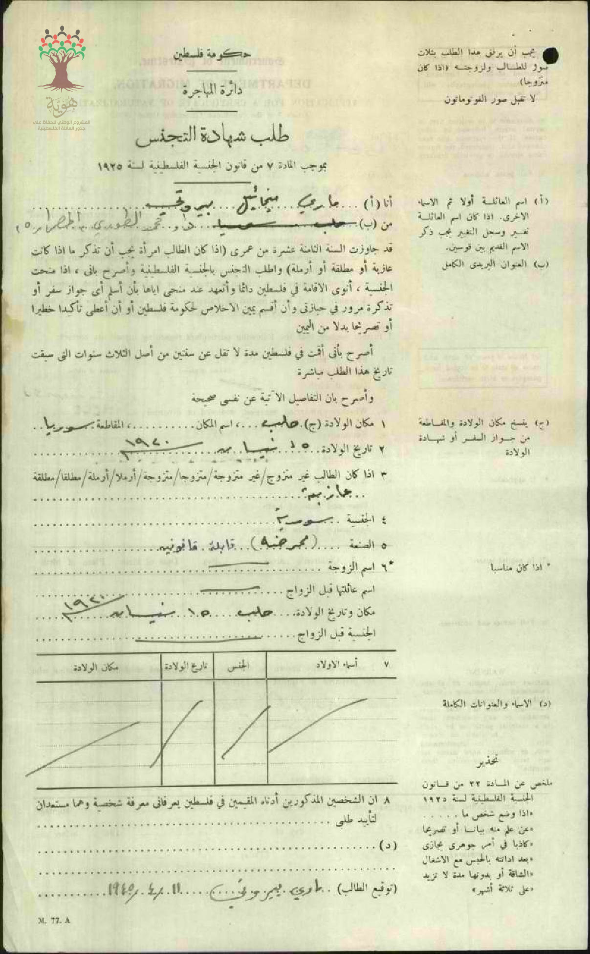 طلب الجنسية الفلسطينية-ماري بيروتي/سوريا