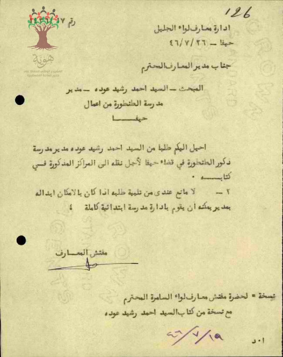 طلب نقل المعلم أحمد رشيد موسى (عودة )إلى احدى مدارس طولكرم