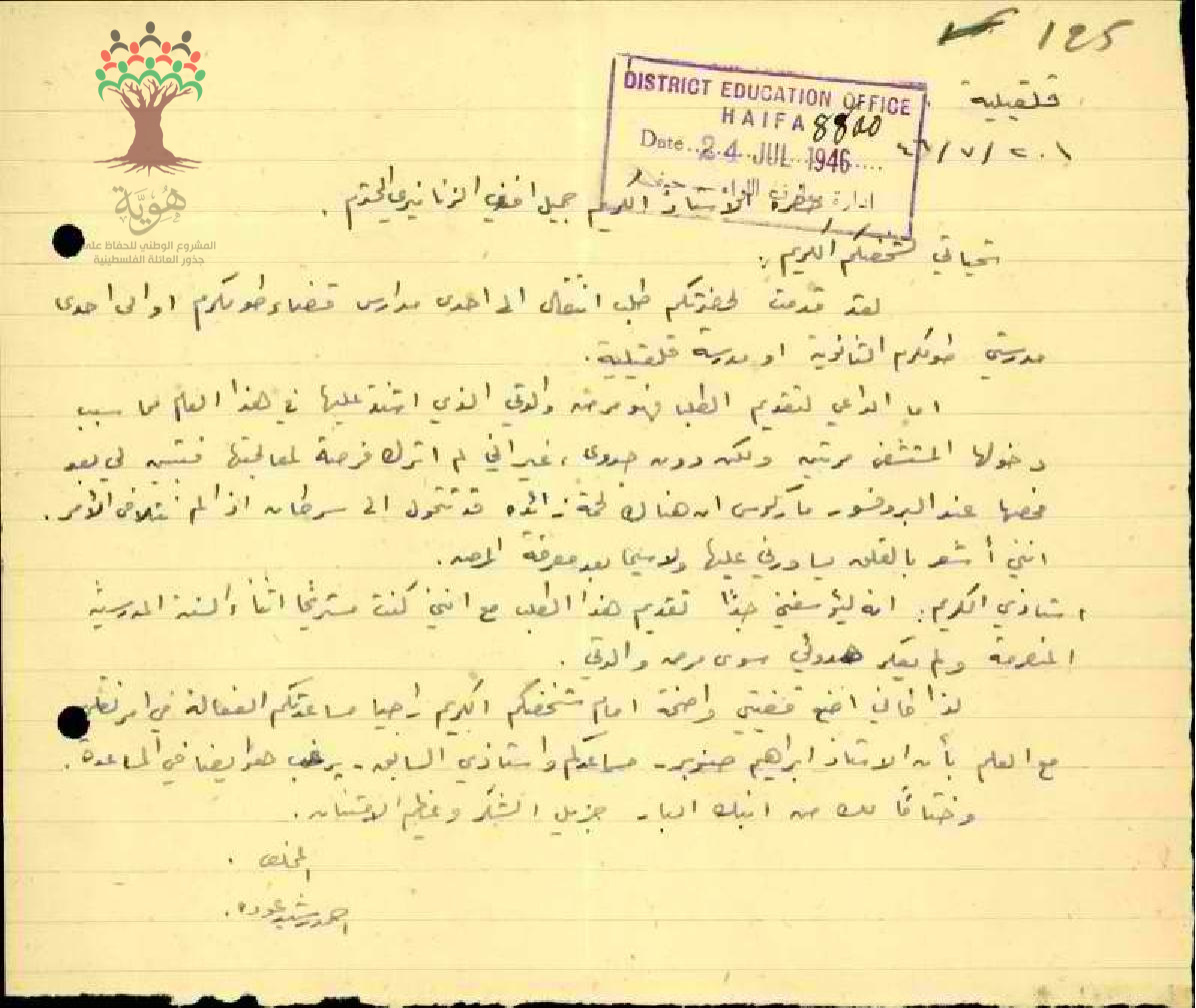 طلب نقل المعلم أحمد رشيد موسى عودة إلى احدى مدارس طولكرم