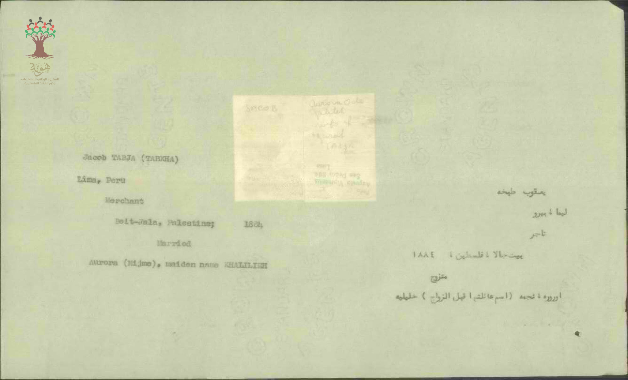 ورقة بيانات يعقوب طبخة المرفقة بطلب الجنسية وزوجته نجمة خليلية