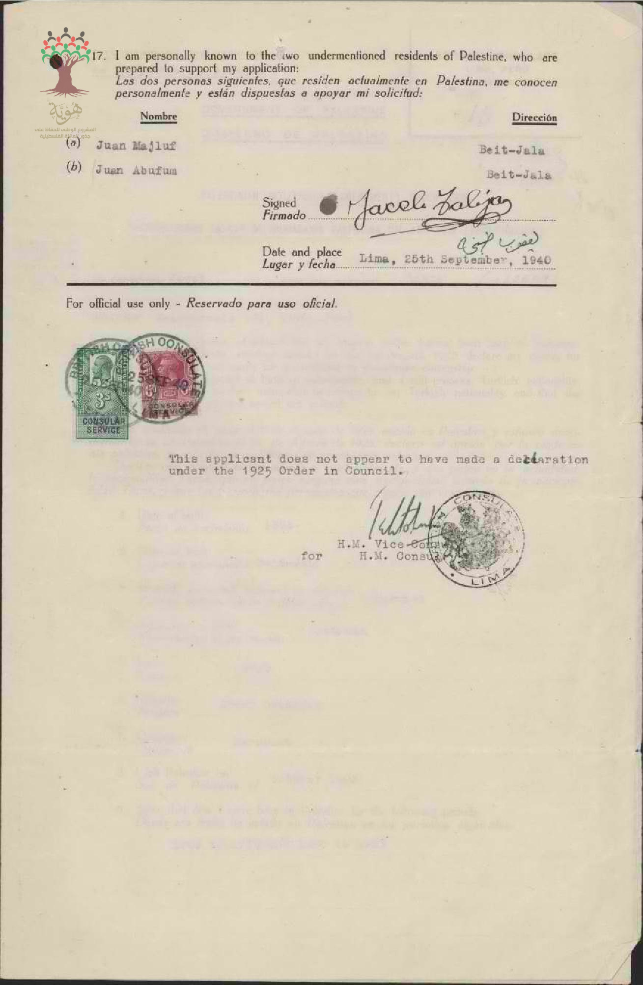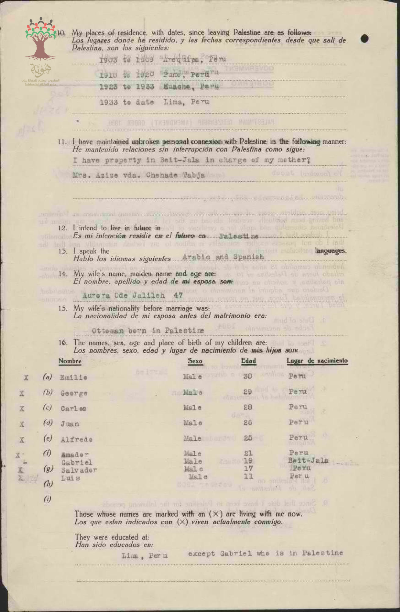 طلب الجنسية الفلسطينية-يعقوب طبخة-بيت جالا/بيرو