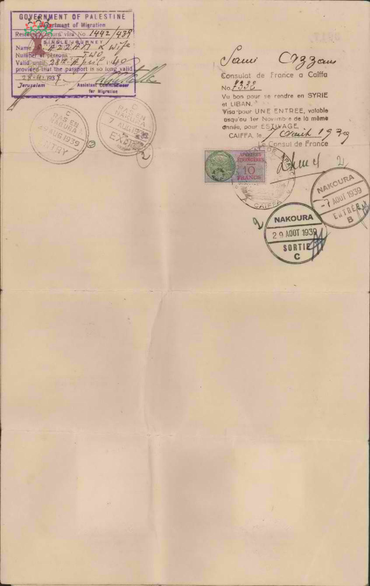 تذكرة هوية ل سامي عزام وزوجته كارسيلا اسمردق