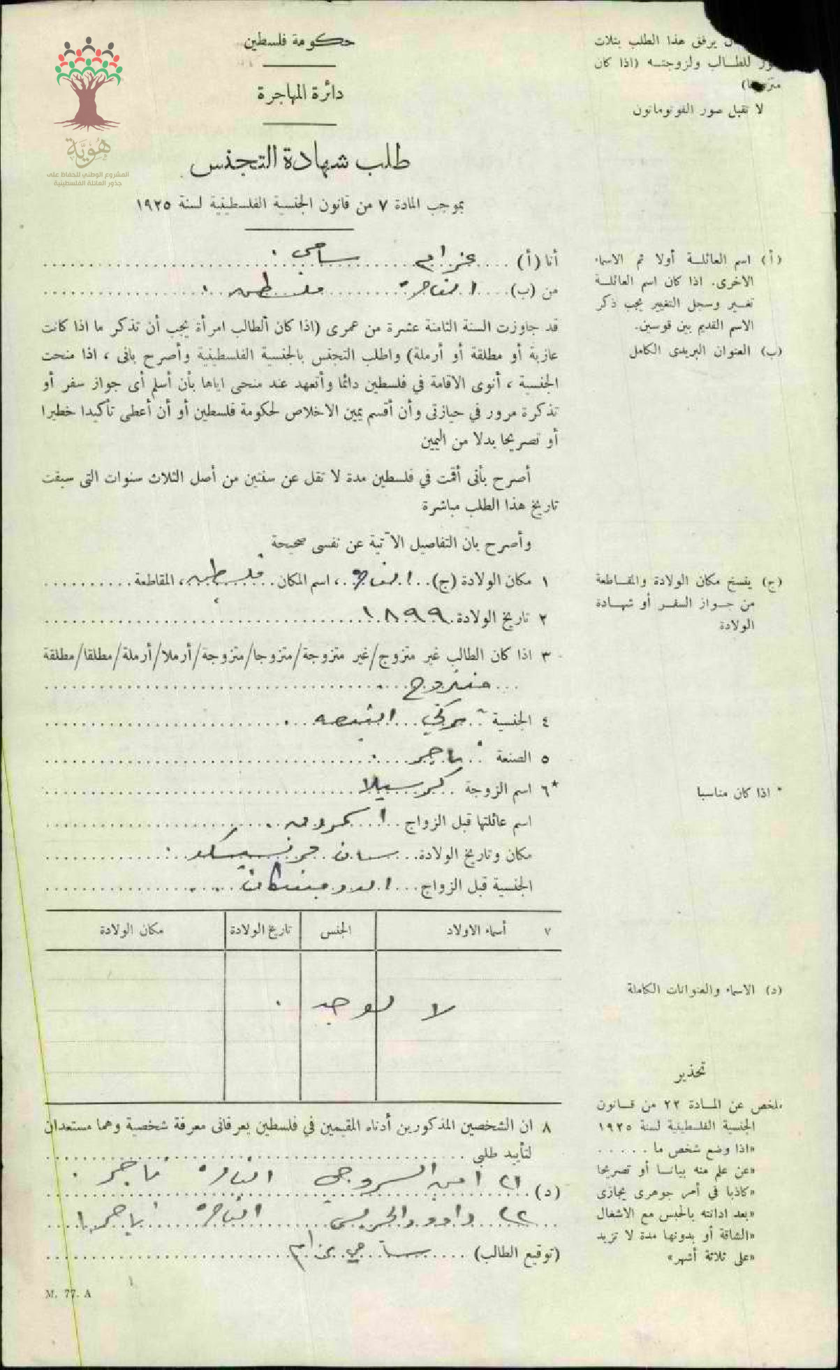 طلب الجنسية الفلسطينية-سامي عزام-الناصرة/دومينيكان