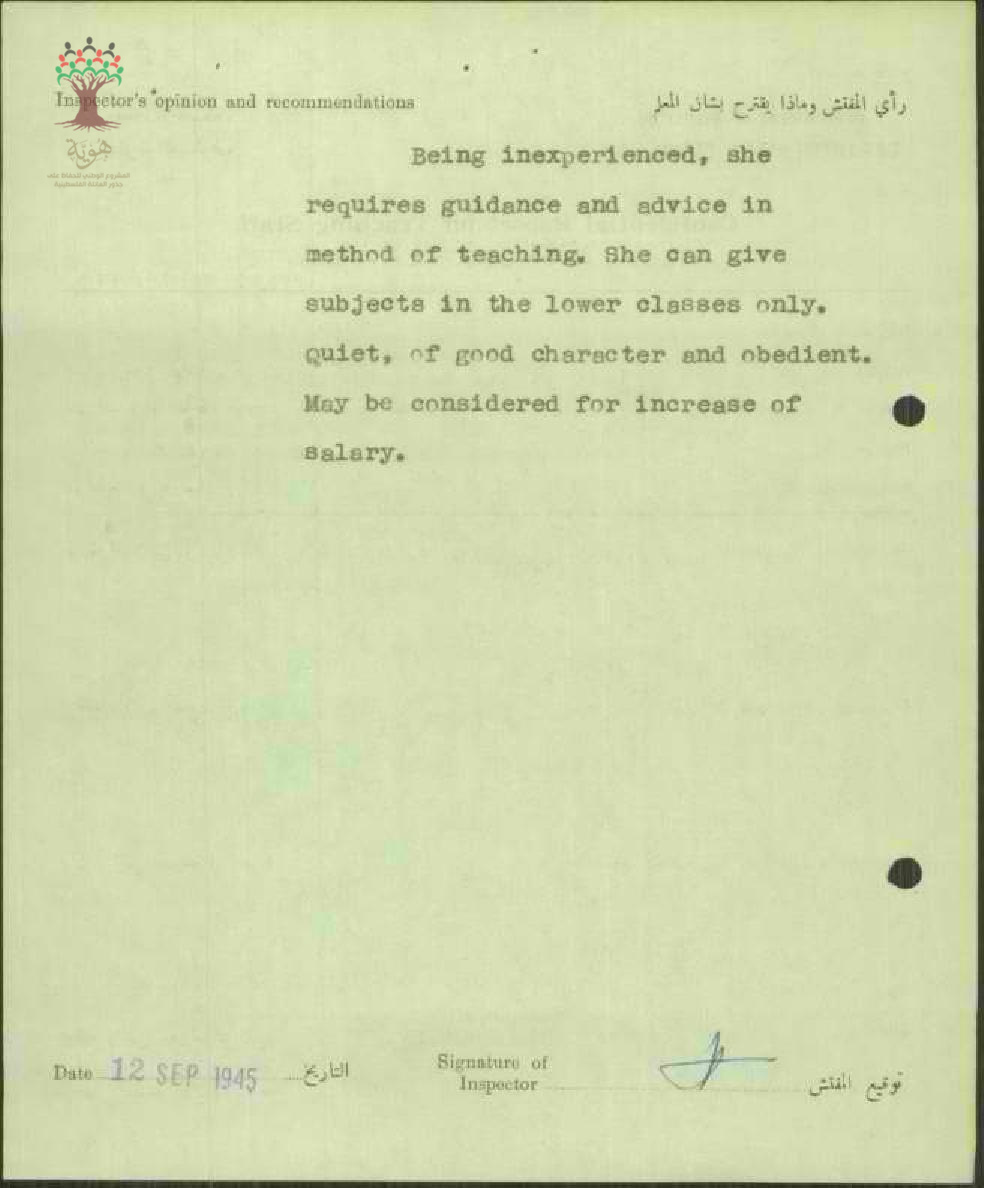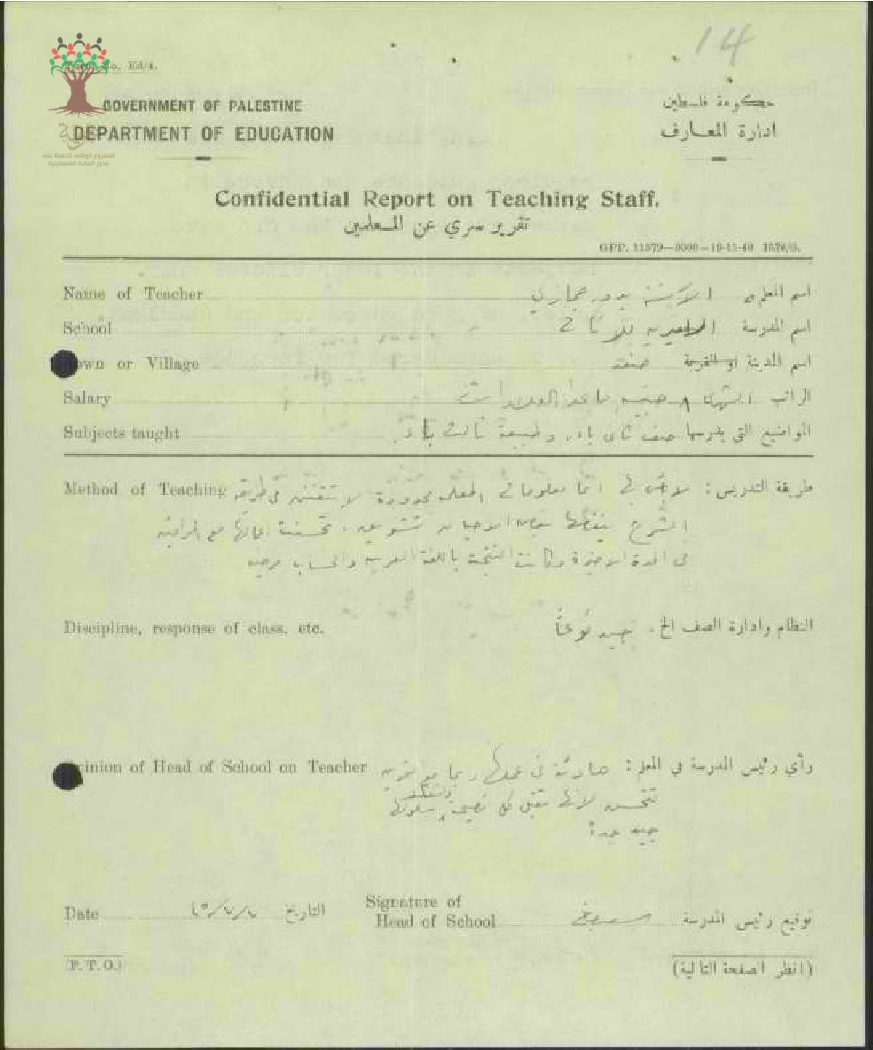 تقرير تفصيلي عن أداء المعلمة بدور حجازي في مدرسة الاميرية للبنات صفد