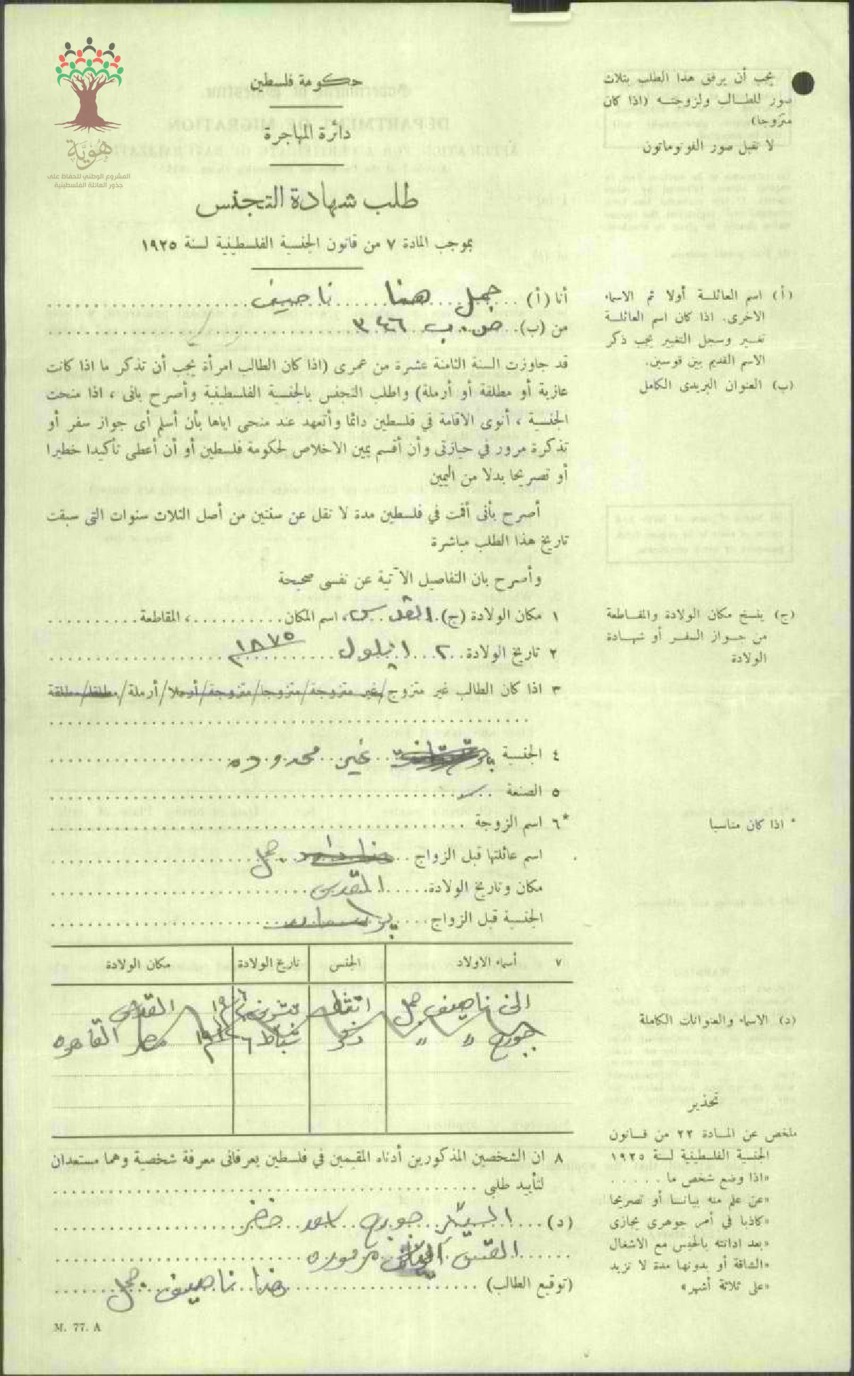 طلب الجنسية الفلسطينية-هنا جمل-القدس
