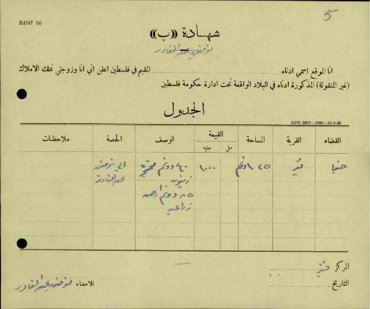 شهادة اثبات ملكية - توفيق عبد القادر / قنير