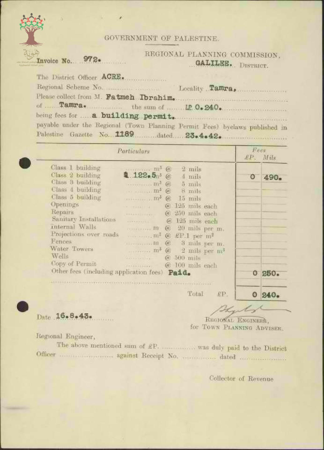 طلب مواد بناء لصالح فاطمة إبراهيم/طمرة