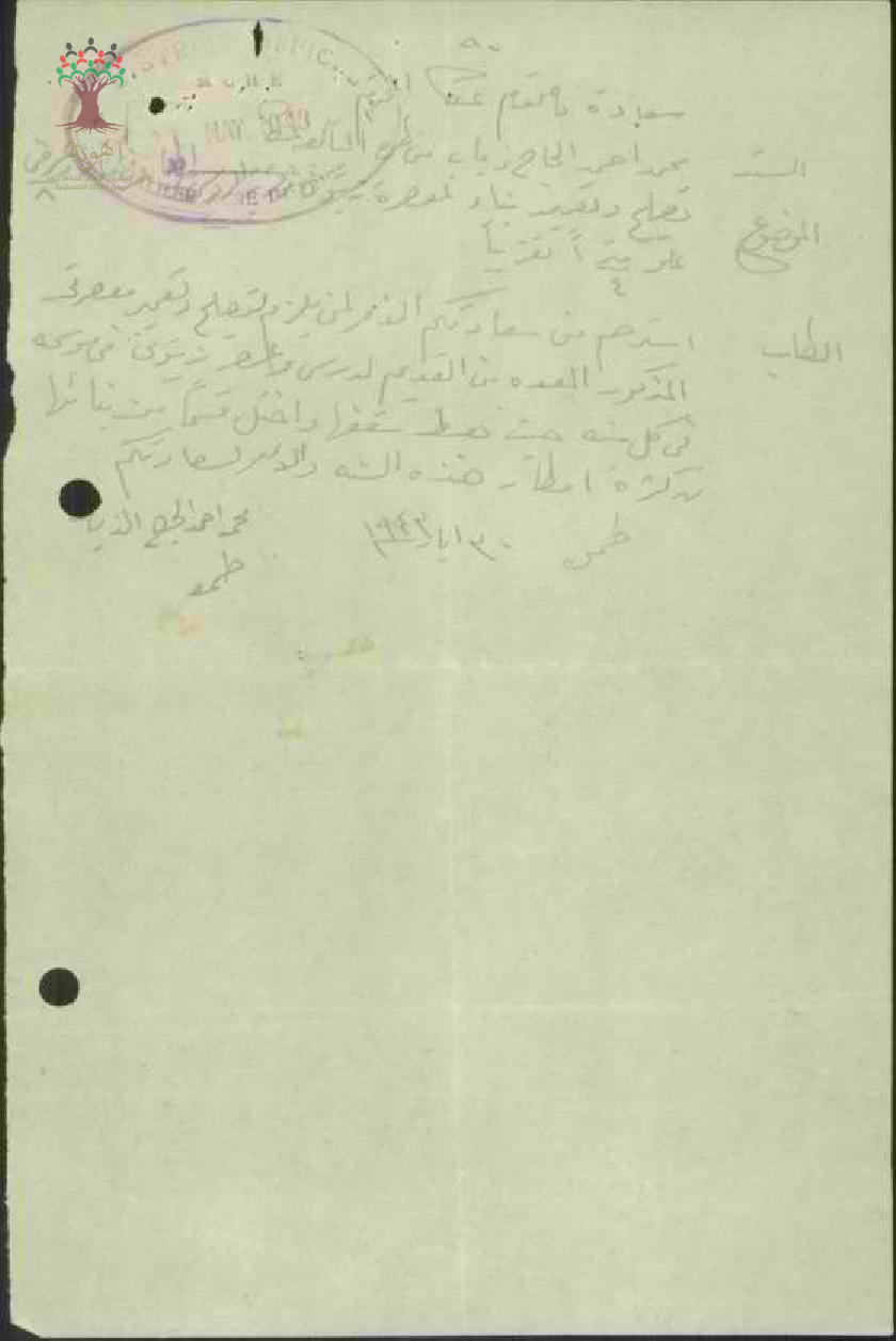رسالة لطلب رخصة إصلاح معصرة وإعادة بنائها ل محمد أحمد حج ذياب-طمرة
