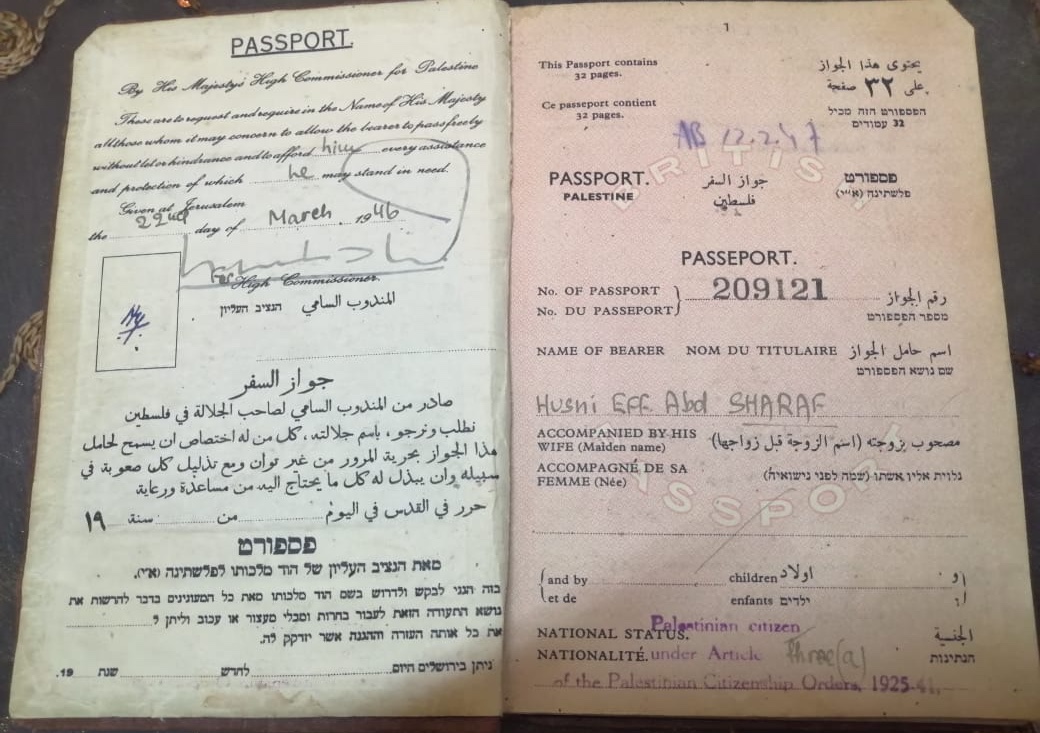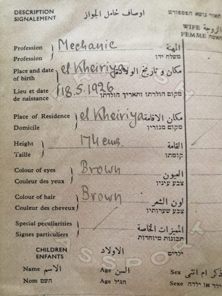 جواز سفر حسني عبد شرف - مواليد قرية الخيرية عام ١٩٢٦