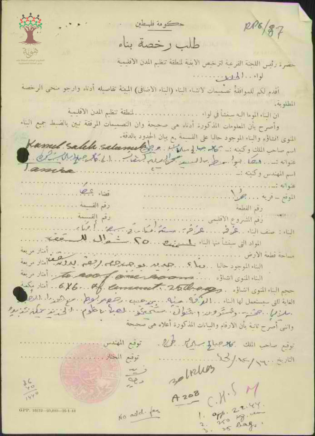 طلب رخصة بناء غرفة ل كامل صالح سليمان-طمرة