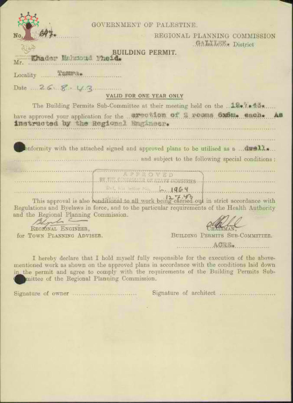 رخصة بناء في طمرة-خضر محمود الفهيد