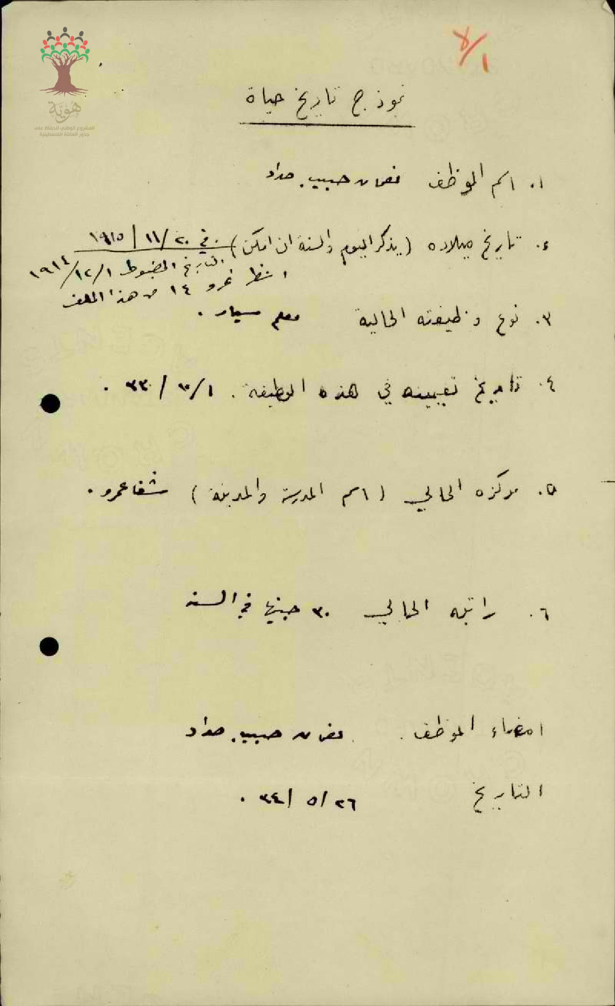 نموذج تاريخ حياة للمعلم نعمان حبيب حداد
