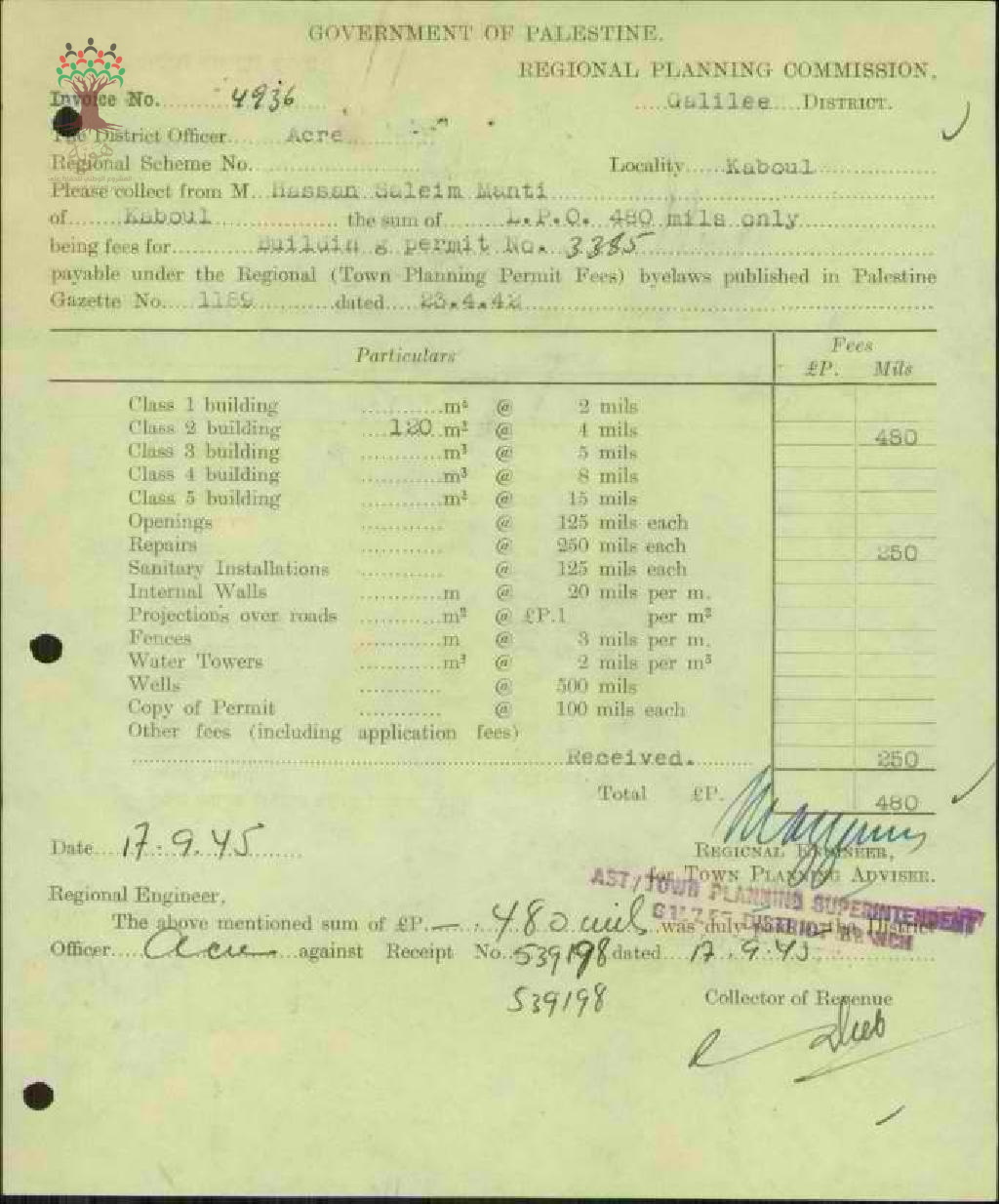 طلب مواد بناء لصالح حسن سليم منتي/كابول