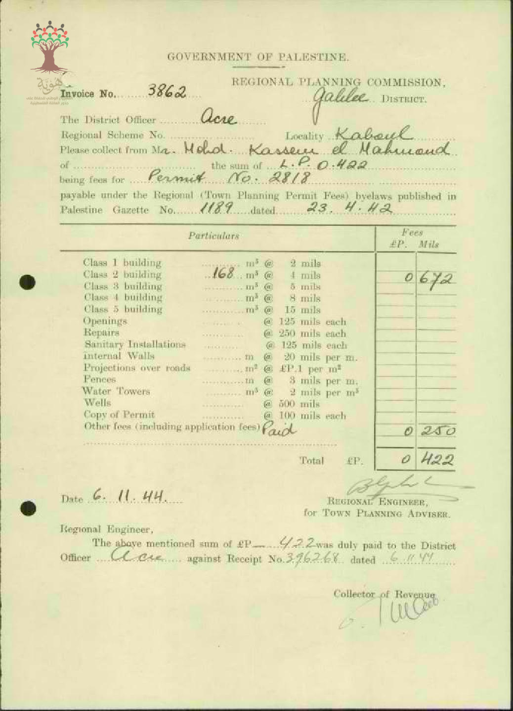 طلب مواد بناء لصالح محمد قاسم محمود/كابول