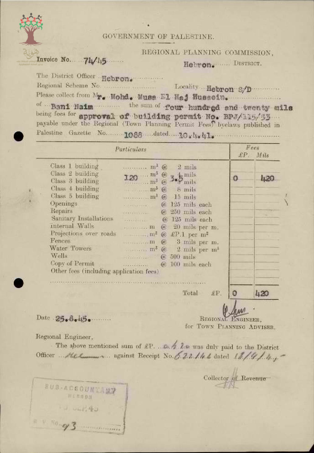 طلب مواد بناء لصالح محمد موسى الحج حسين/بني نعيم