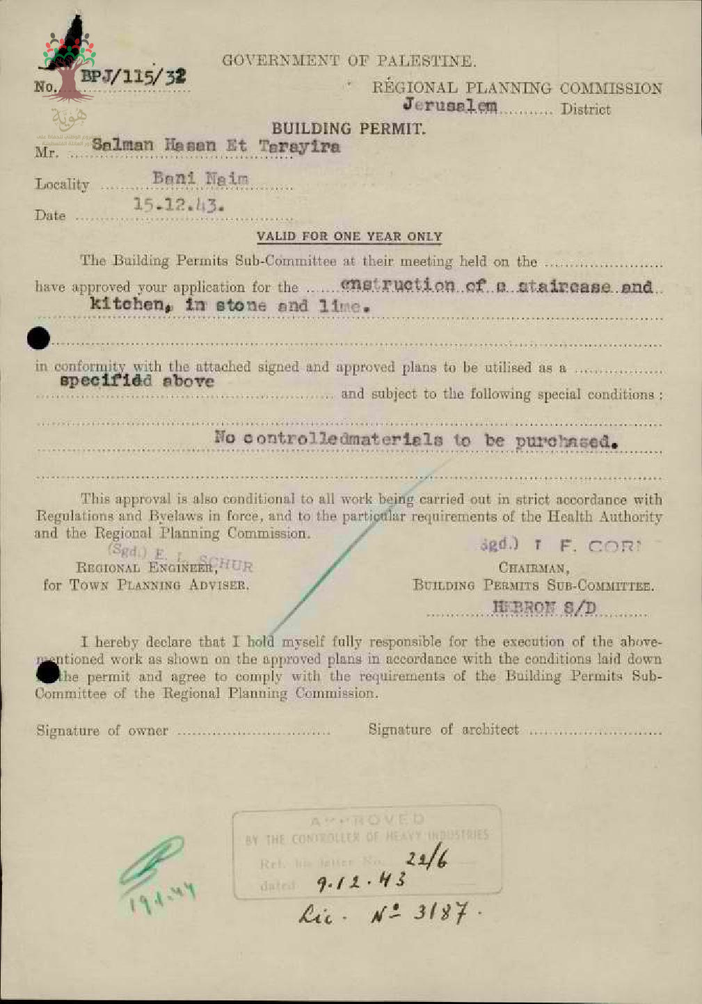 رخصة بناء في بني نعيم-سالم حسن الطرايرة