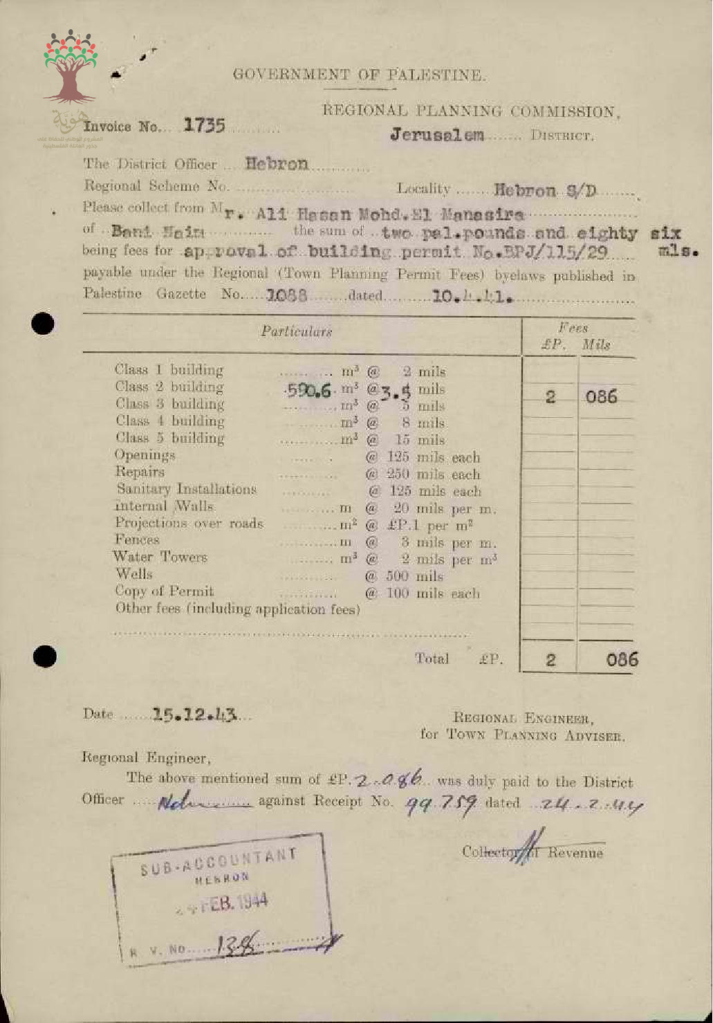 طلب مواد بناء لصالح علي حسن محمد المناصرة/بني نعيم