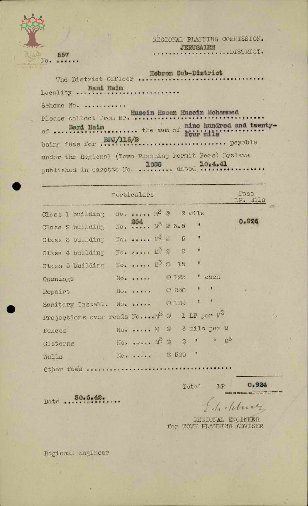 طلب مواد بناء لصالح حسين حسن حسين محمد/بني نعيم