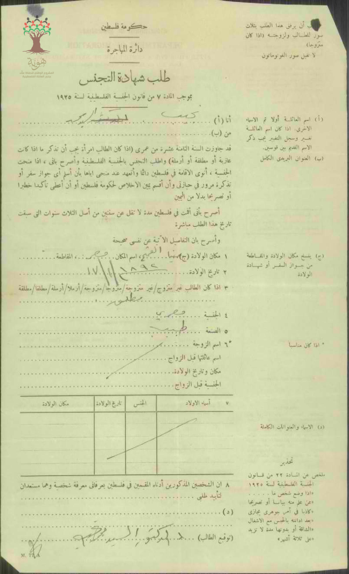 طلب الجنسية الفلسطينية-سيد النابلسي-يافا/مصر