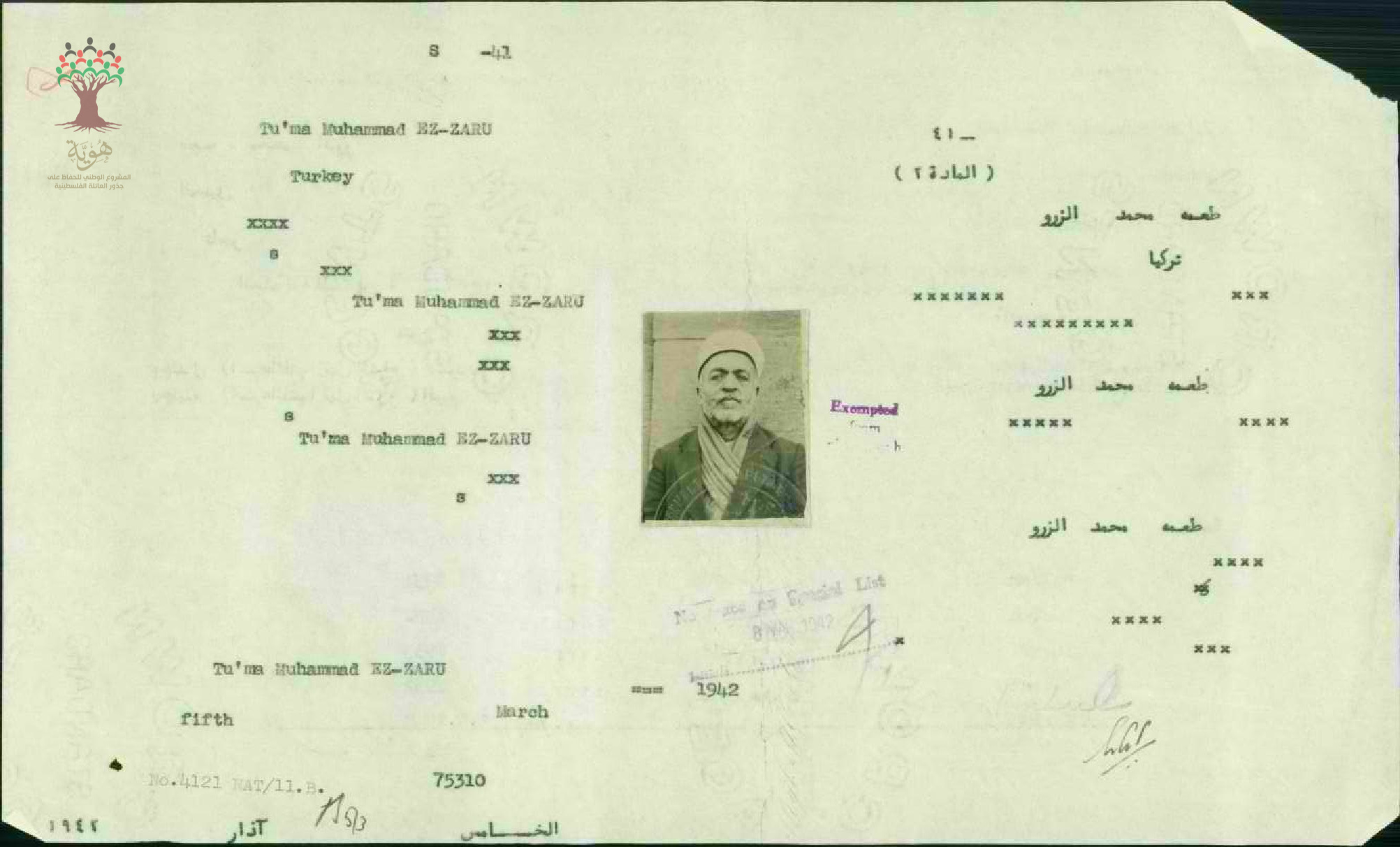 ورقة بيانات طعمة محمد الزرو المرفقة بطلب الجنسية