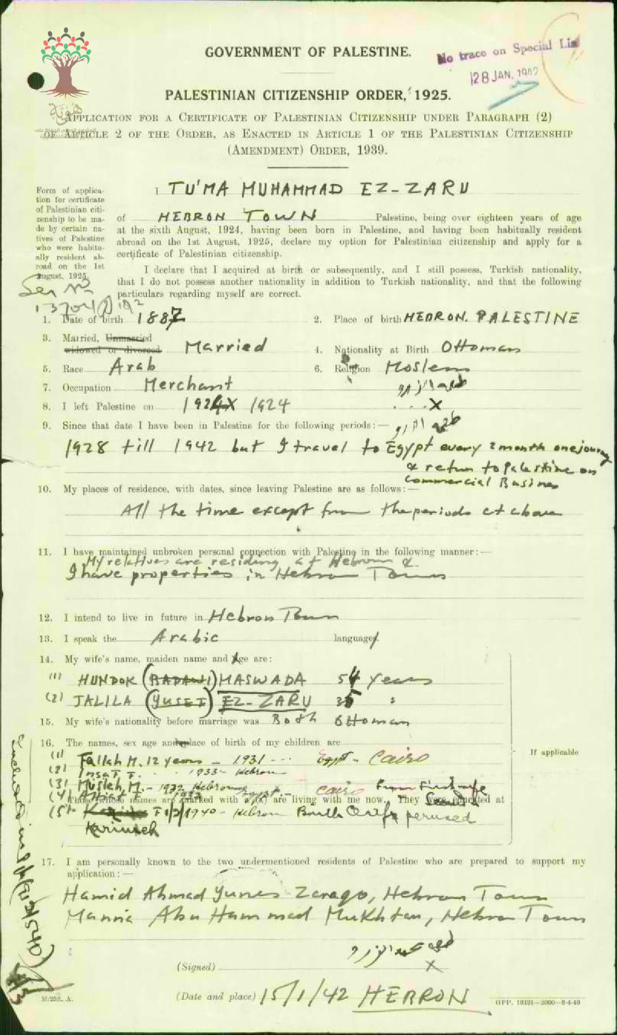 طلب الجنسية الفلسطينية-طعمة محمد الزرو-الخليل