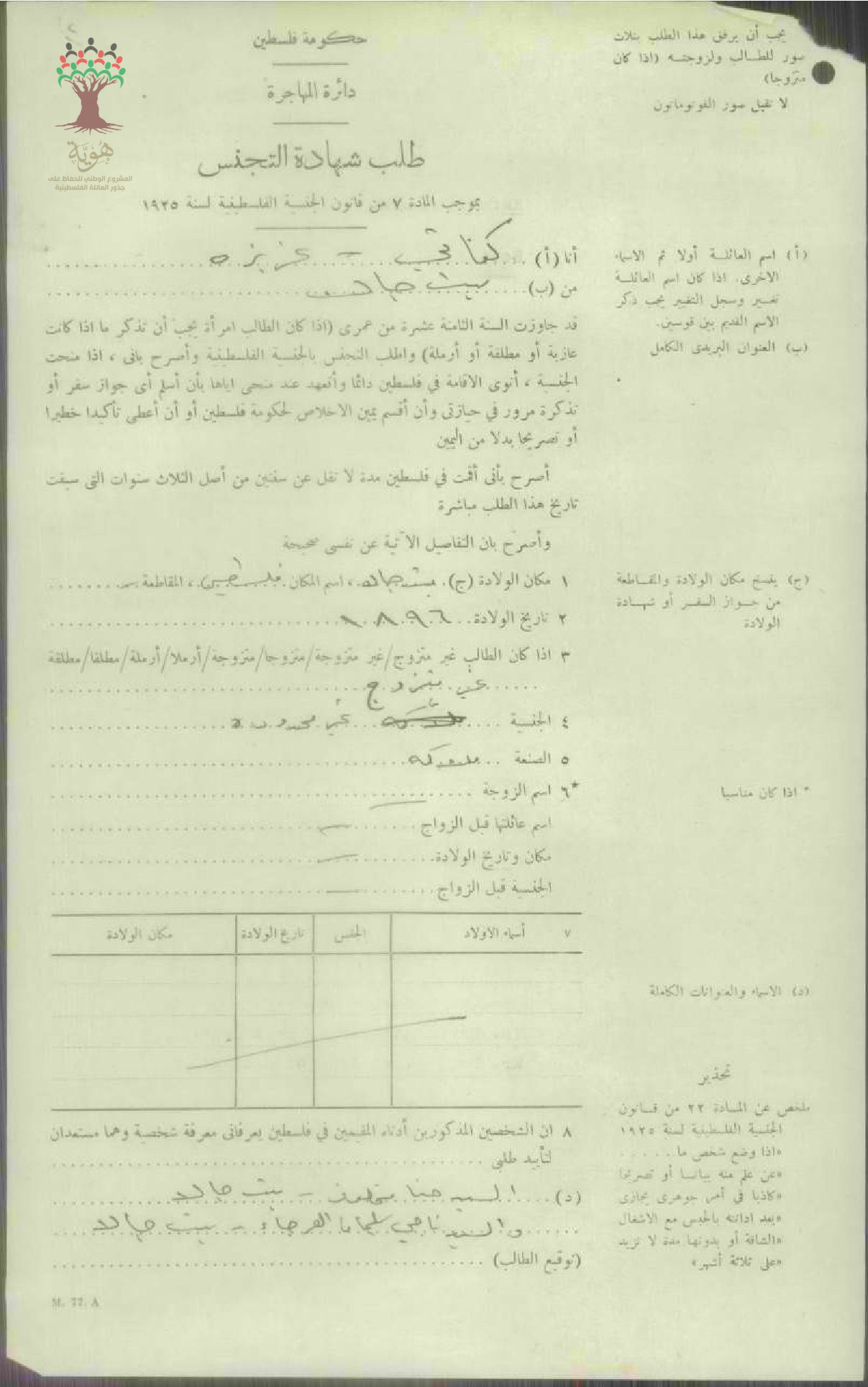 طلب الجنسية الفلسطينية-عزيزة كفاتي-بيت جالا