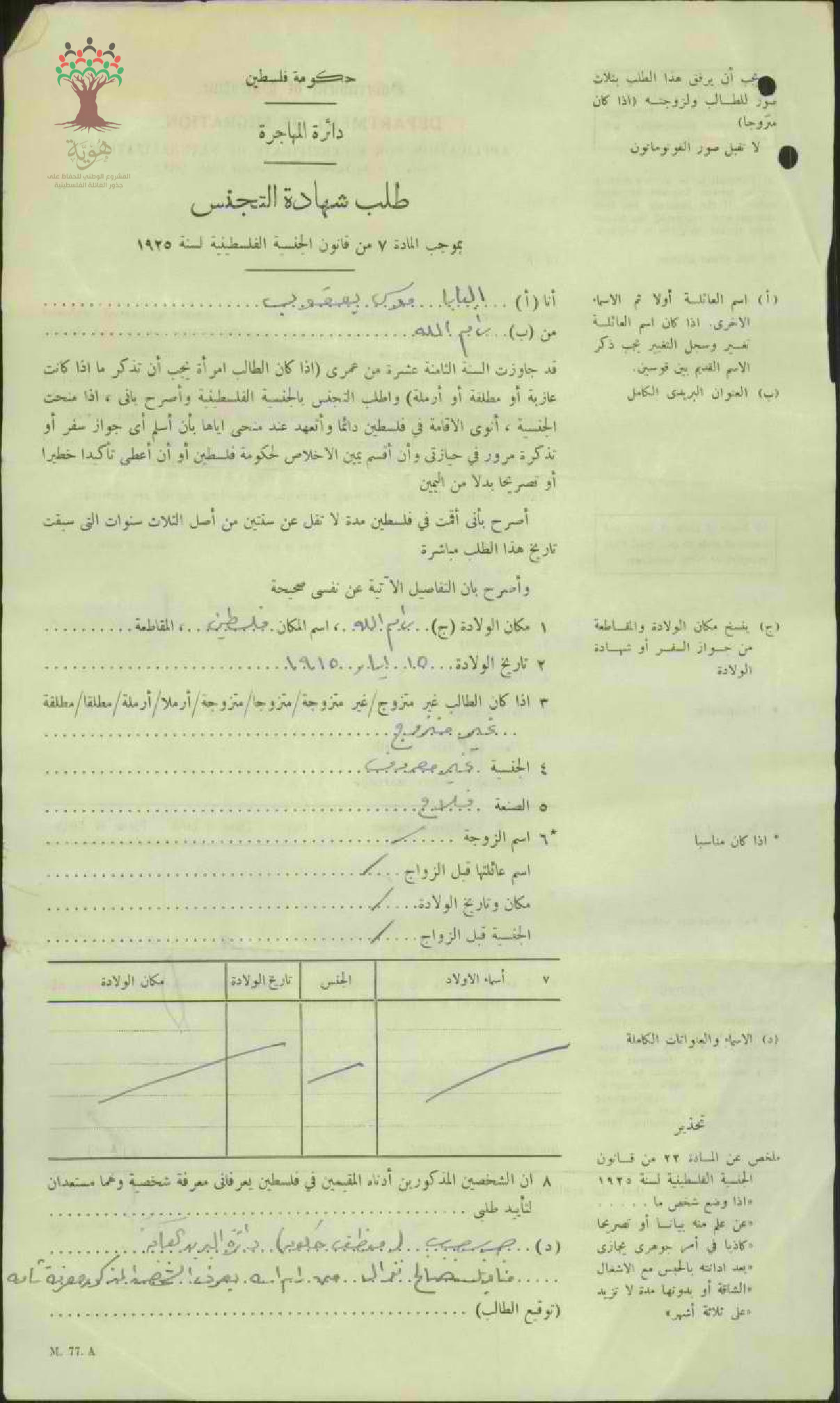 طلب الجنسية الفلسطينية-موسى يعقوب البابا-رام الله