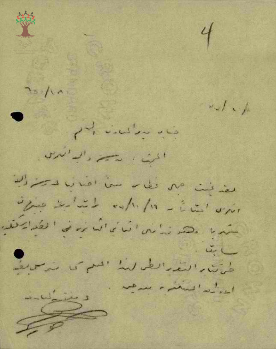 رسالة من مفتش المعارف إلى مدير المعارف يبحث معه تعيين المعلم جمال غطاس في مدرسة دالة الكرمل