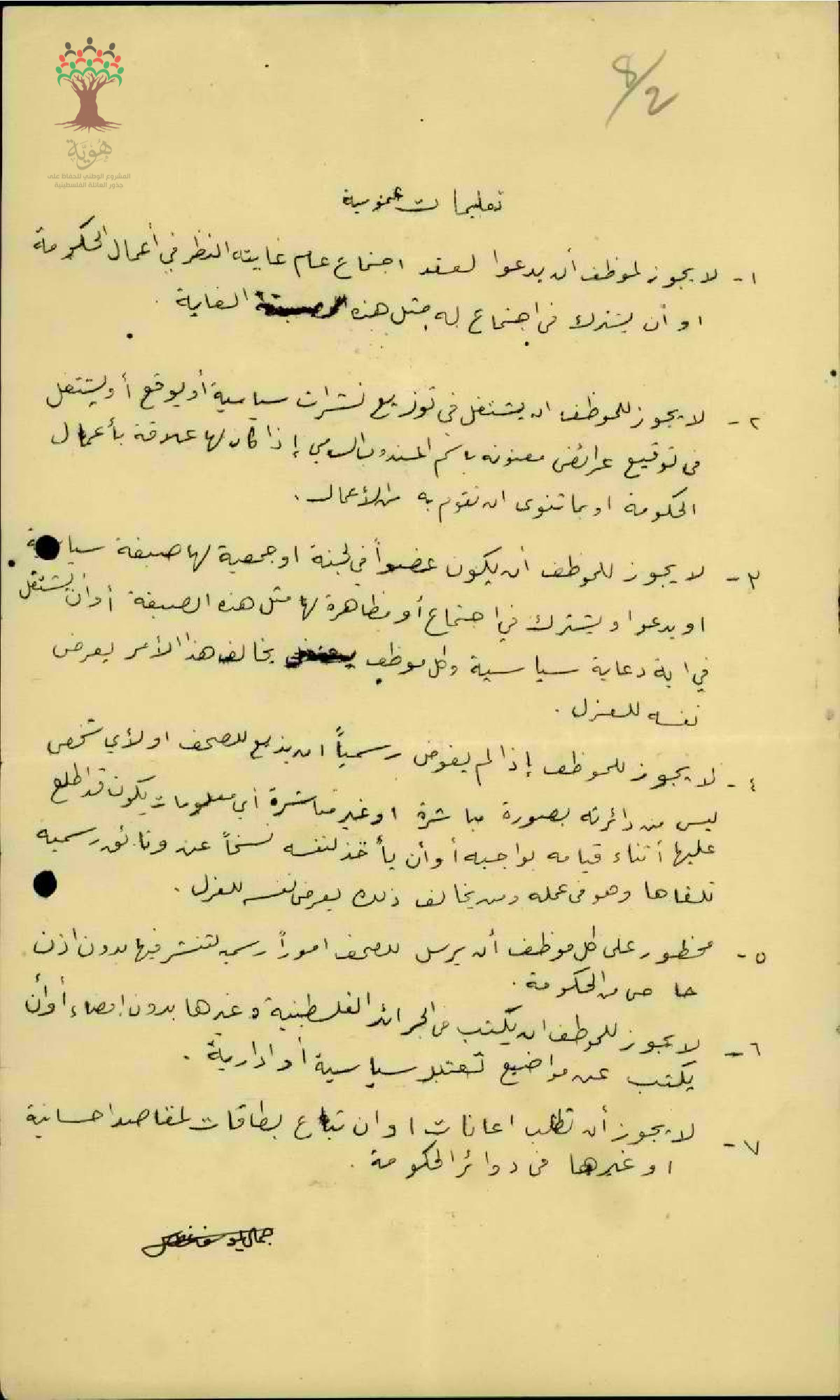 توقيع المعلم جمال غطاس على التعليمات العمومية لإدارة المعارف