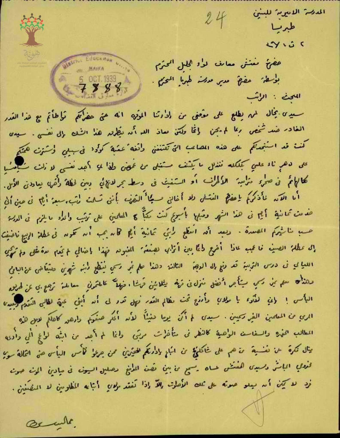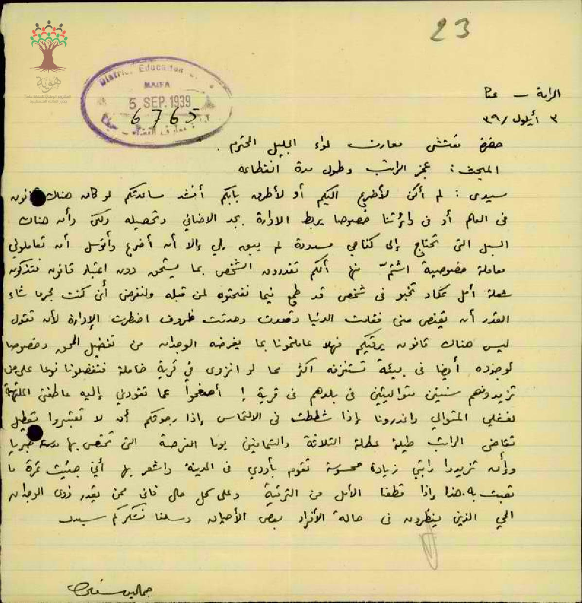 طلب زيادة راتب مقدم من المعلم جمال غطاس إلى مفتش المعارف