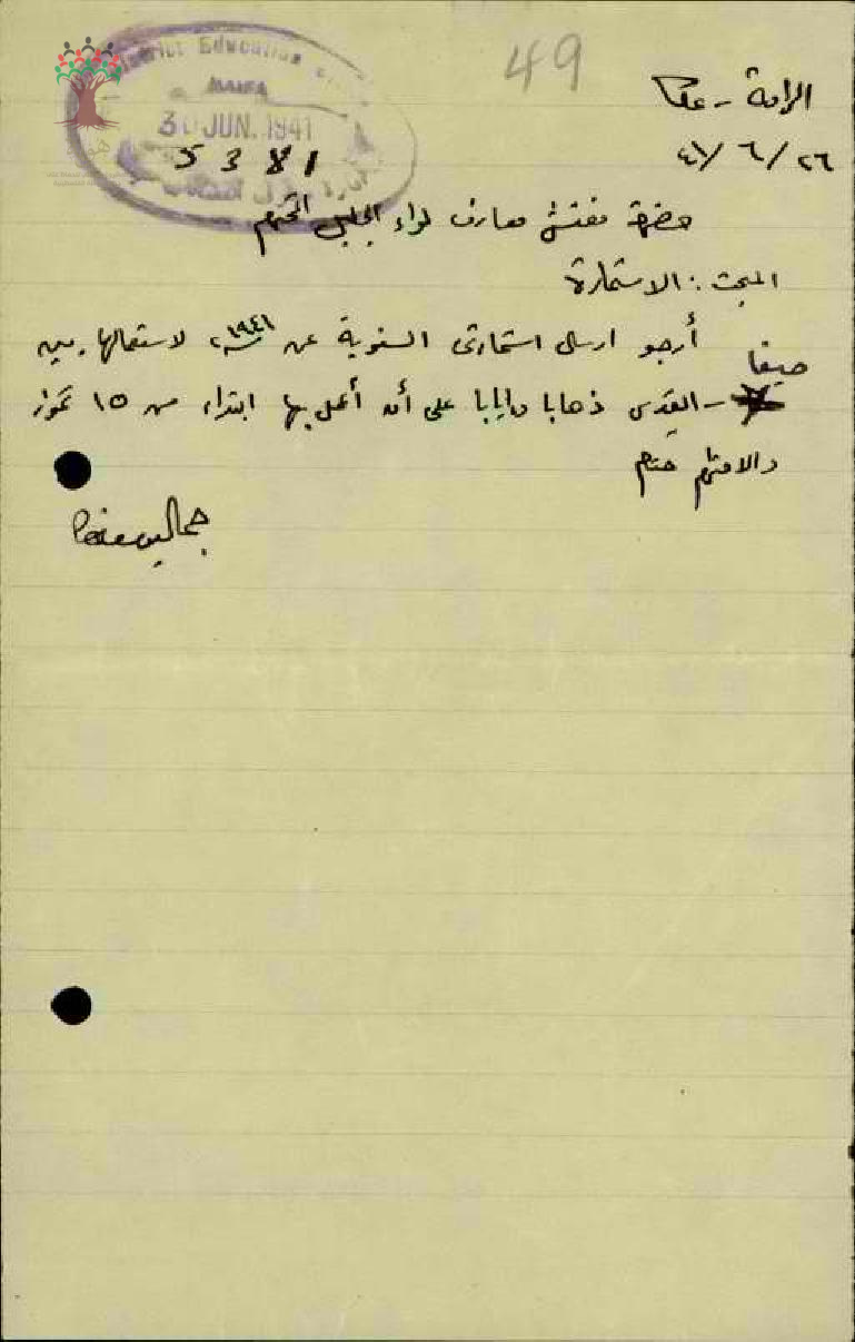 طلب استمارة مقدم من المعلم جمال غطاس إلى مفتش المعارف