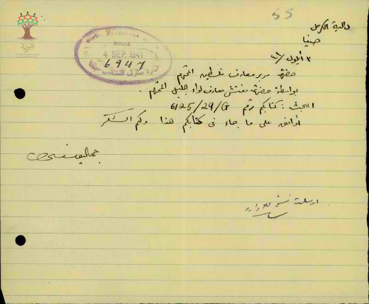 موافقة المعلم جمال غطاس على القرار الذي بلغه اياه مفتش المعارف وارسال رسالة إليه