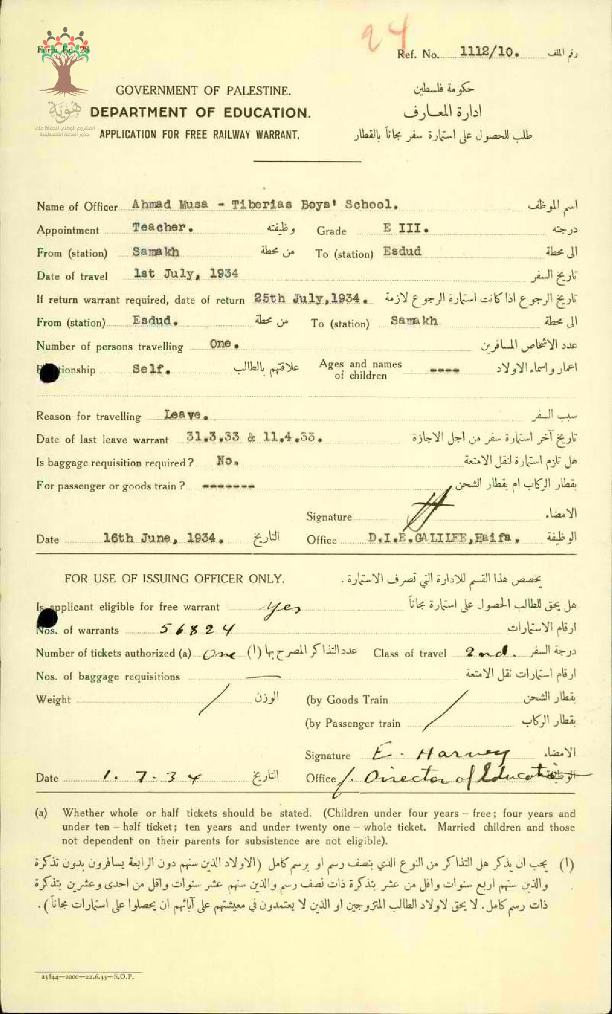 طلب للحصول على استمارة سفر مجاناً بالقطار للمعلم أحمد موسى