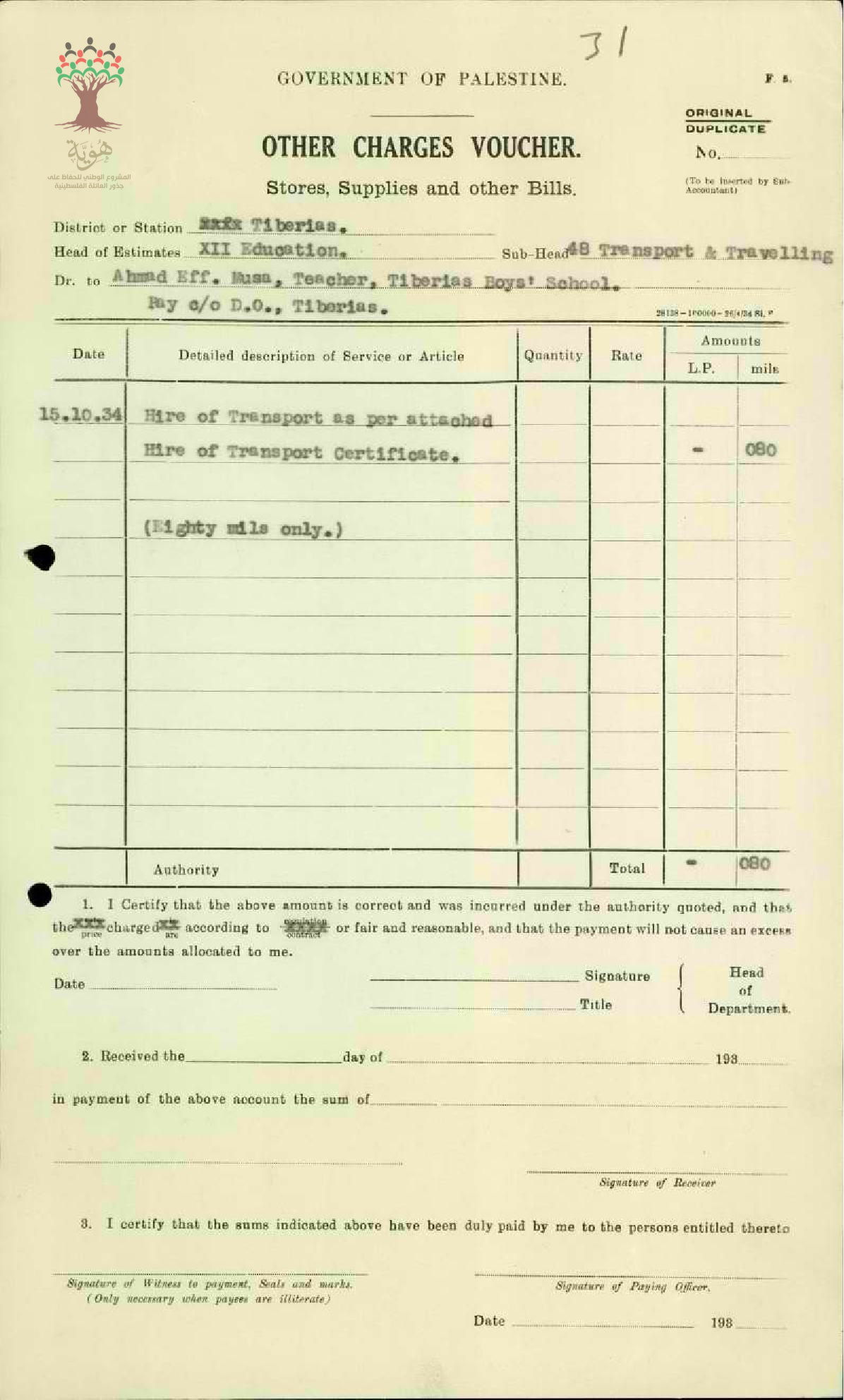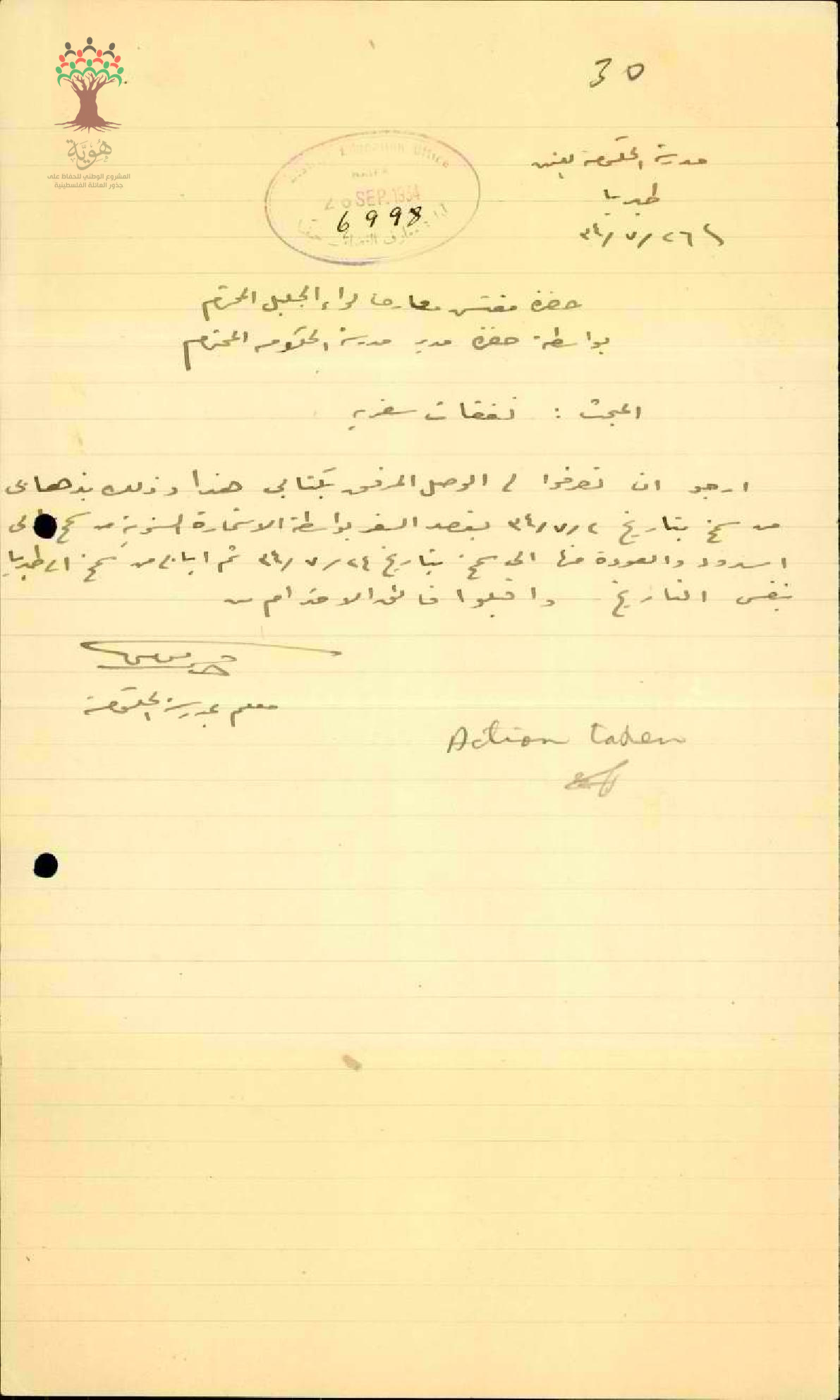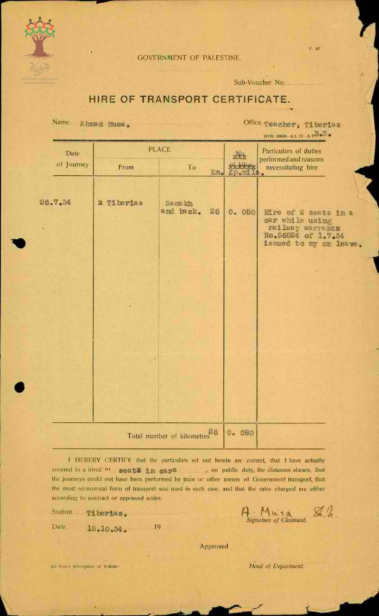 رسالة من المعلم أحمد موسى إلى مفتش المعارف يطلب منه دفع نفقات السفر