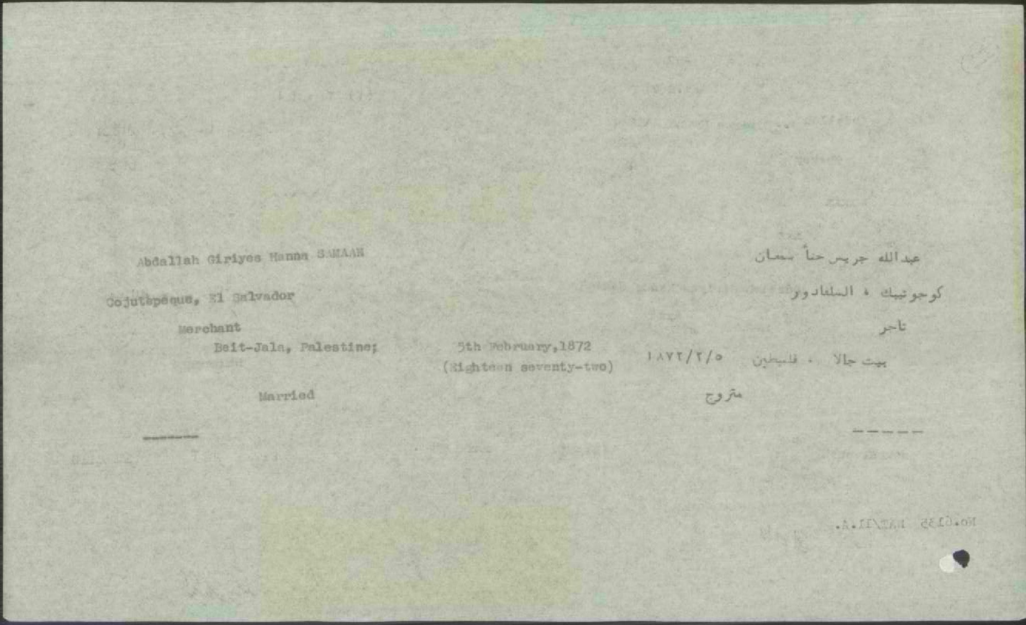 ورقة بيانات عبد الله جريس حنا سمعان المرفقة بطلب الجنسية