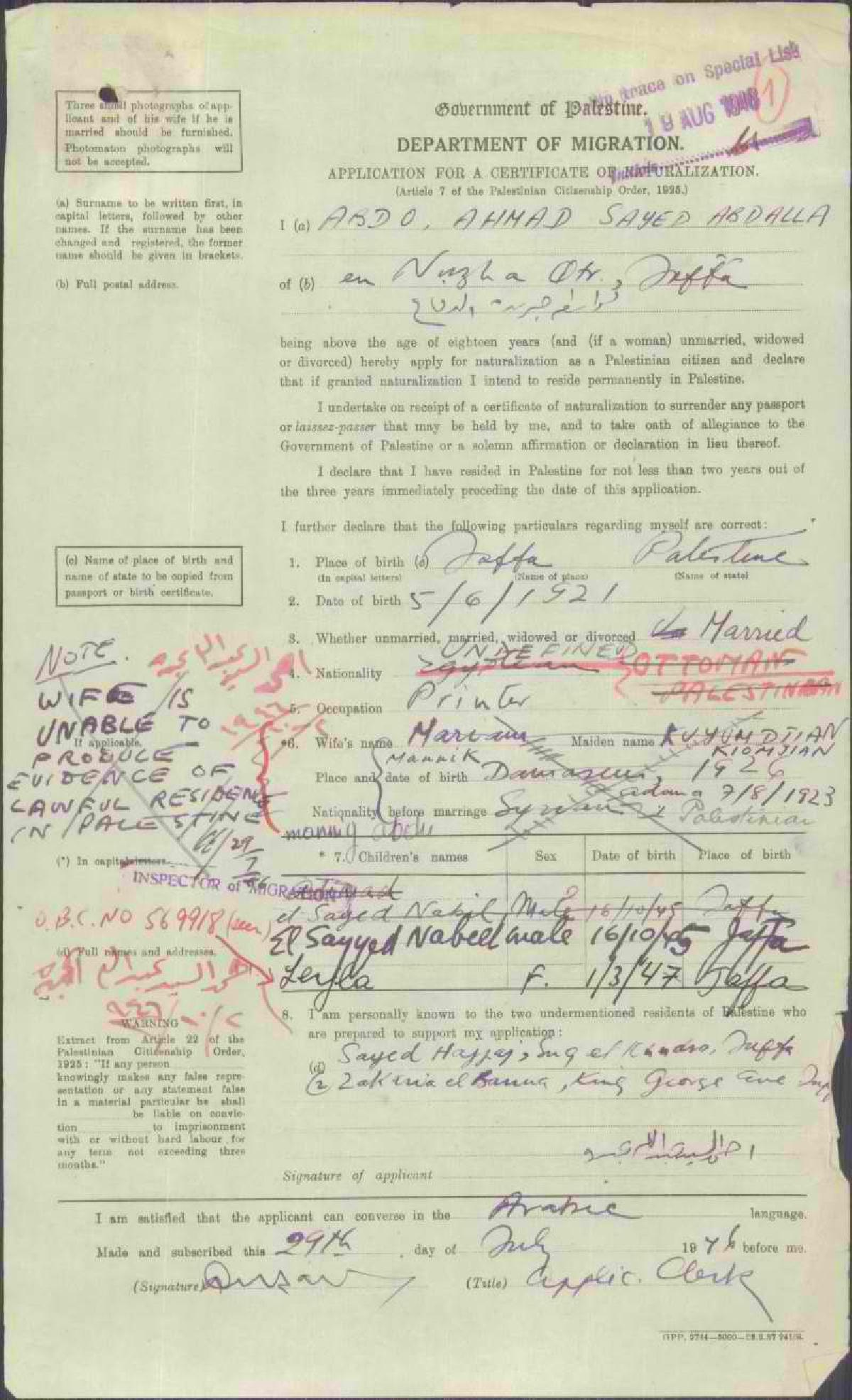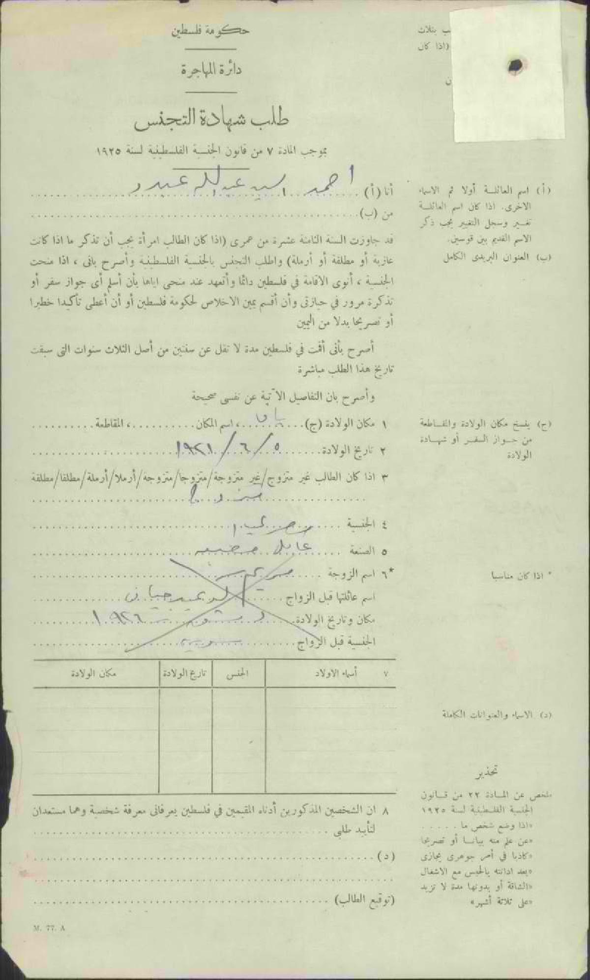 طلب الجنسية الفلسطينية-أحمد سيد عبده-يافا