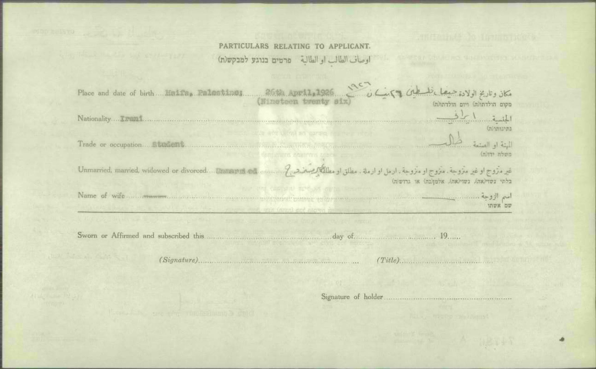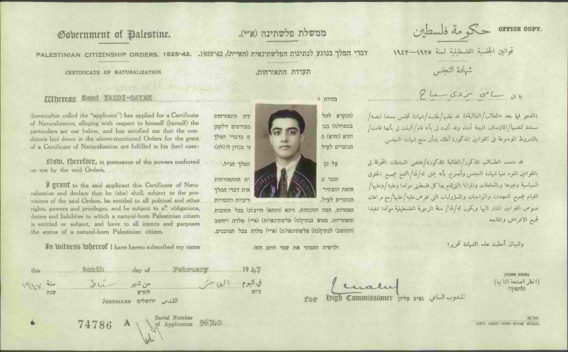 شهادة الجنسية الفلسطينية ل سامي يزدي سياح