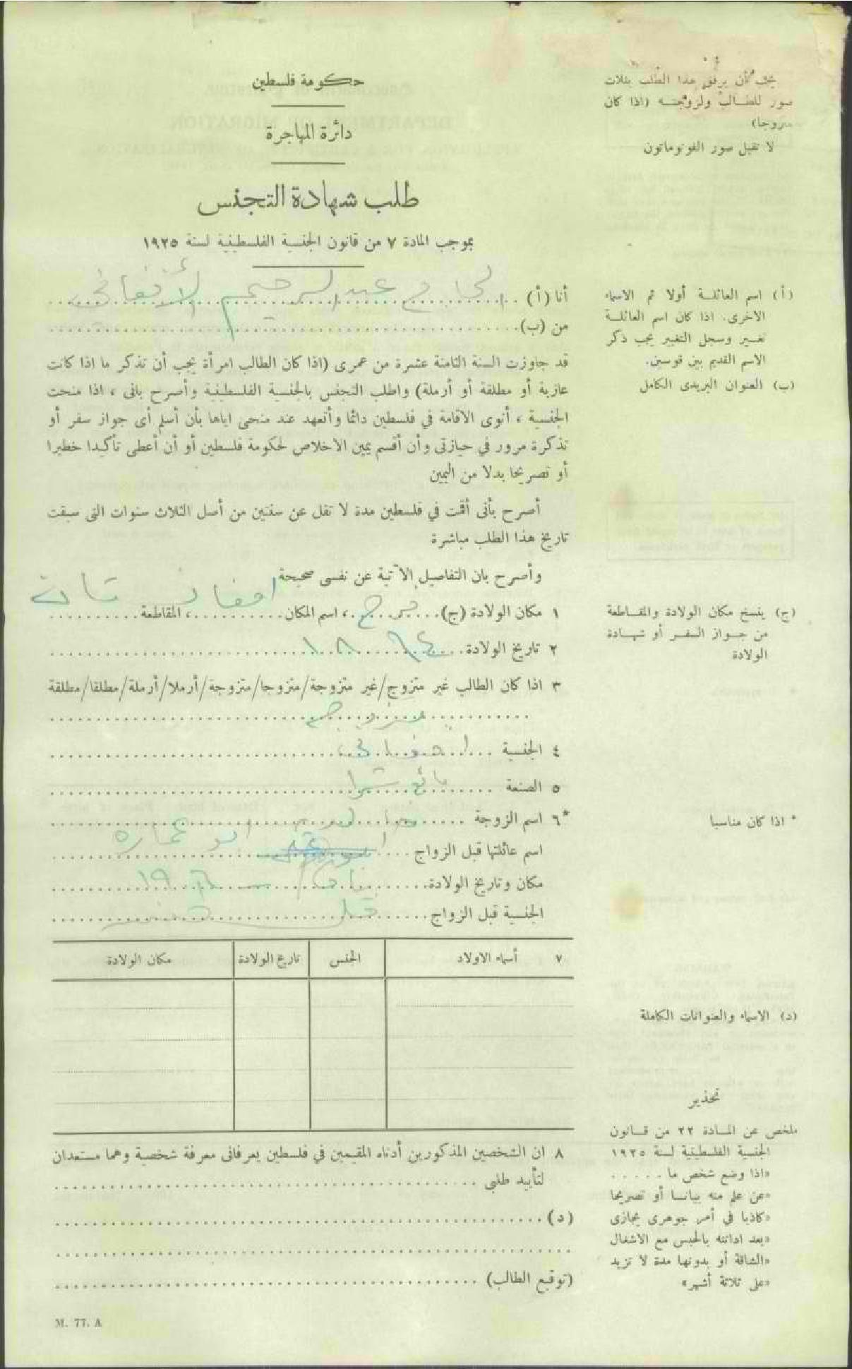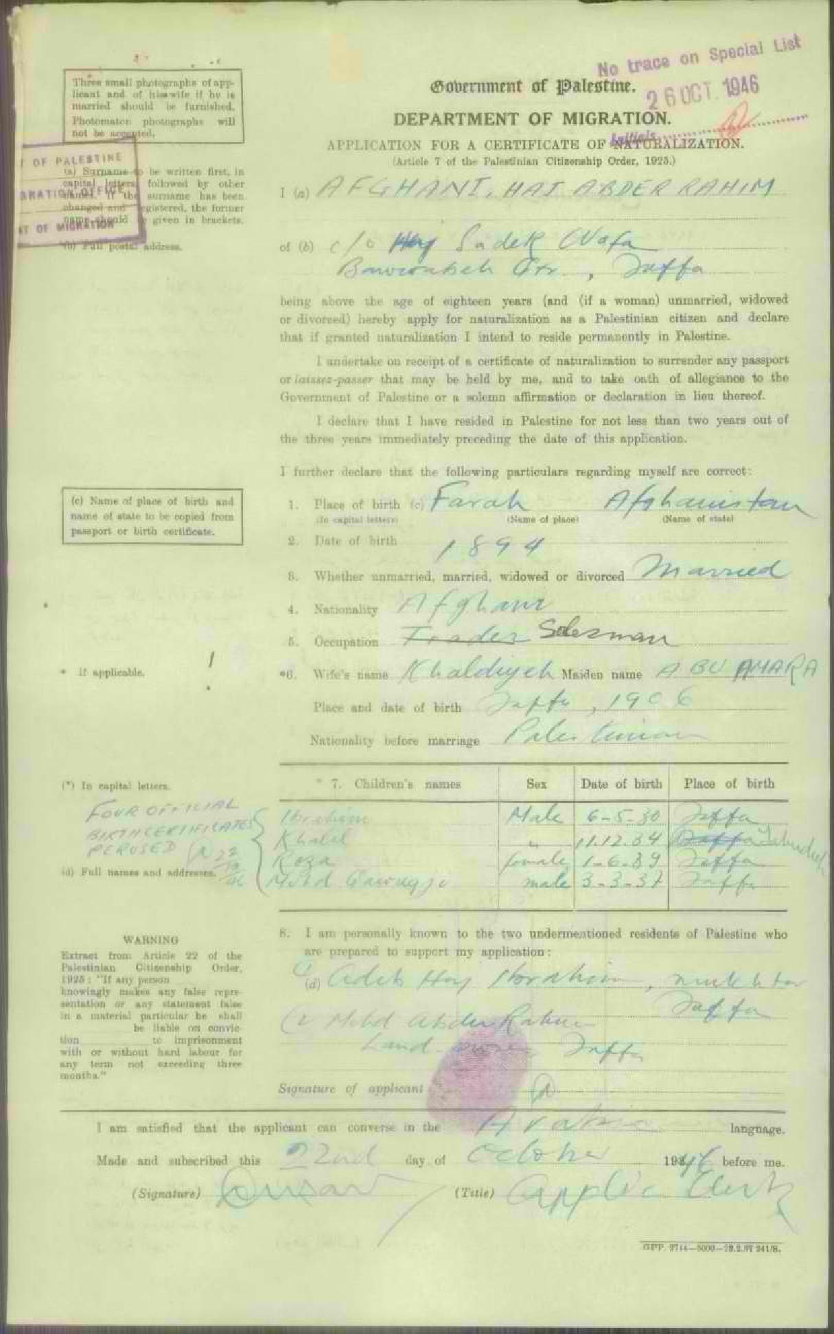 طلب الجنسية الفلسطينية-عبد الرحيم الأفغاني-يافا/أفغانستان